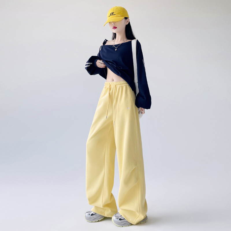 多巴胺美式刺绣阔腿裤女春秋松弛感直筒垂坠感显瘦降落伞运动卫裤