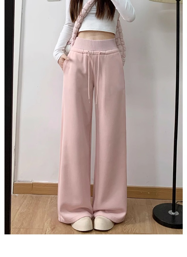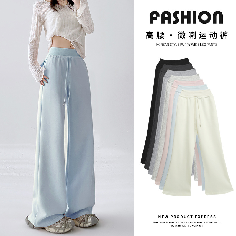 ピンクマイクロフレアパンツレディーススポーツパンツ2025春夏新作ハイウエストスリムワイドレッグカジュアル小柄馬蹄パンツ