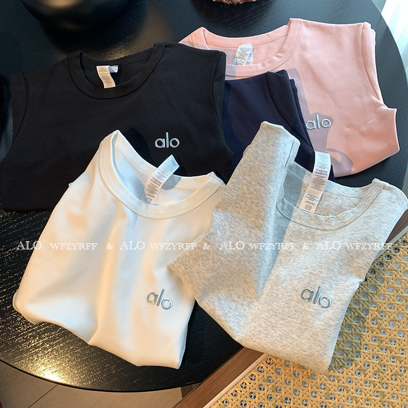 在庫あり ALO 半袖 レディース 夏新作 小文字ロゴ入り スリムフィット 多用途 ベーシック 無地Tシャツ トップス トレンドファッション