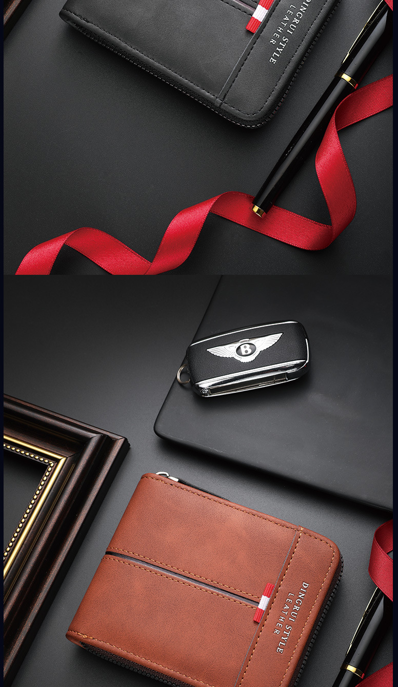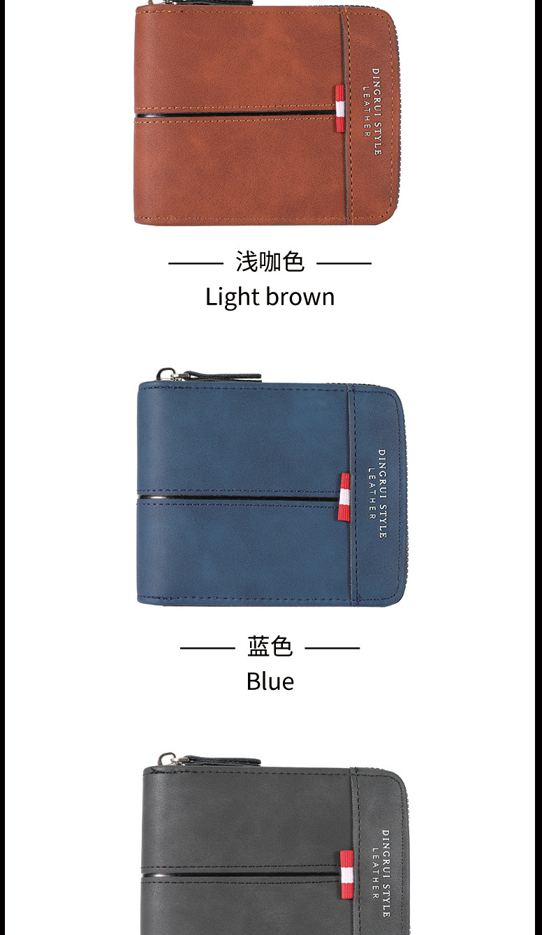 2025新款跨境男士钱包短款横款拉链三折零钱包复古休闲搭扣四方包