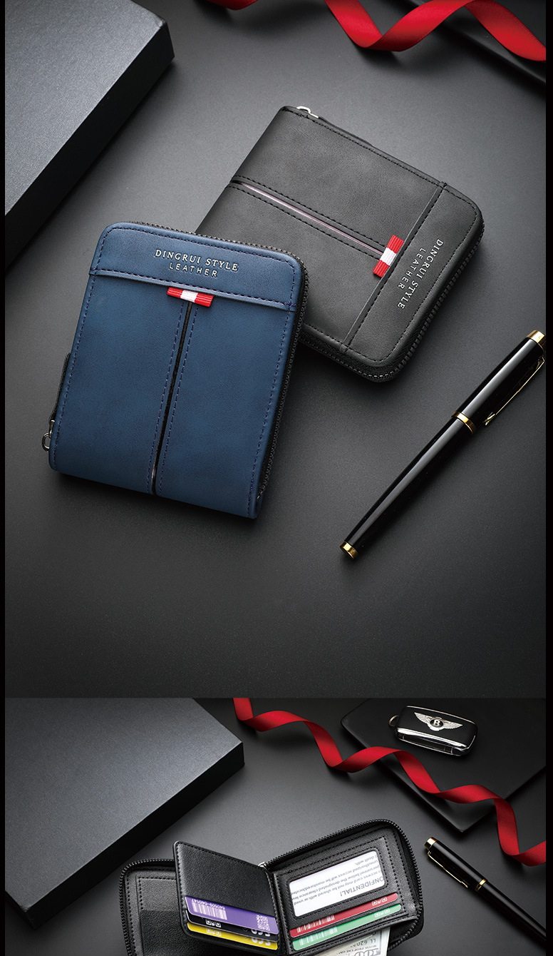 ホット販売メンズジッパーショートクレジットカード財布カード運転免許証バッグ多機能便利な小銭入れ