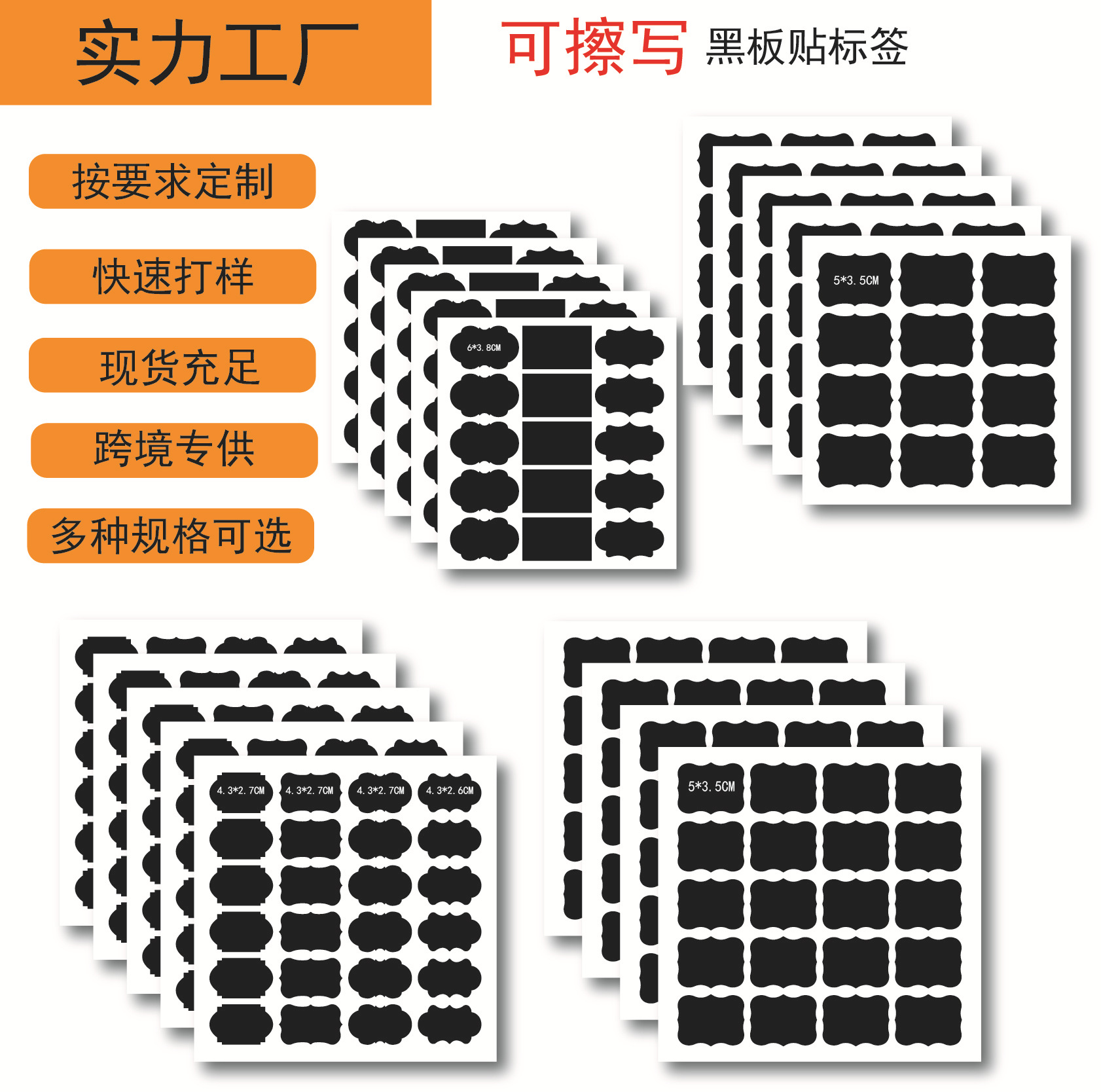 国境を越えた現物はpvc黒色のステッカー防水キッチン調味料ガラス瓶の黒板にラベルを貼ることができる