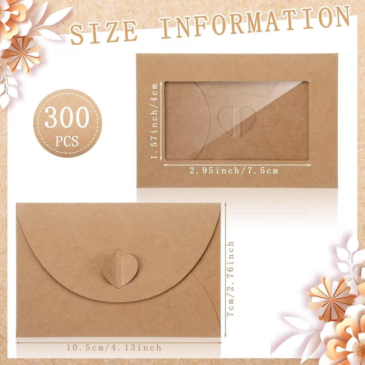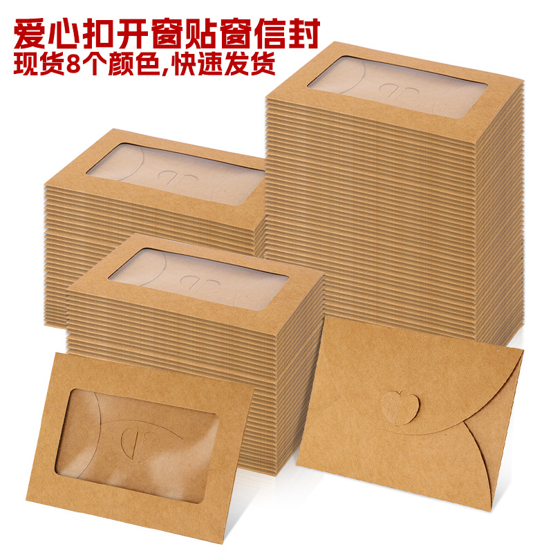 亚马逊复古透明牛皮纸开窗贴窗PET爱心扣彩色会员卡创意小信封