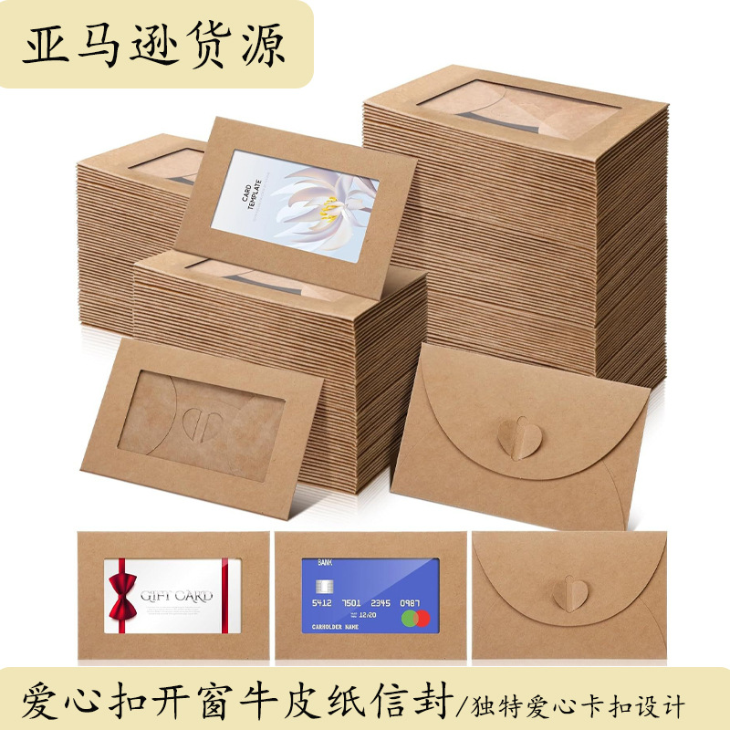亚马逊爱心牛皮纸信封银行卡会员卡开窗贺卡明信片创意复古信封