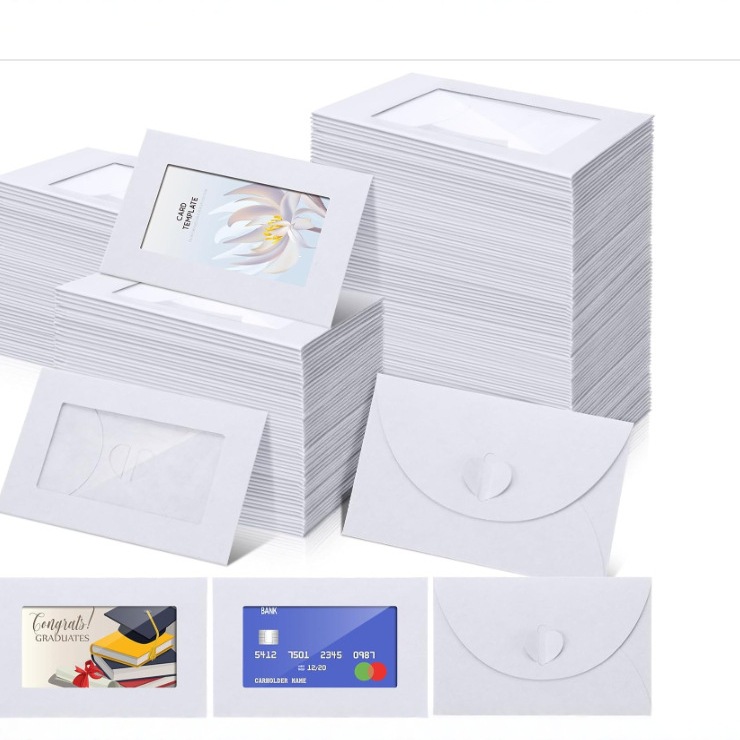 亚马逊厂家批发牛皮纸爱心扣开窗贴窗PET彩色彩卡信封会员卡信封