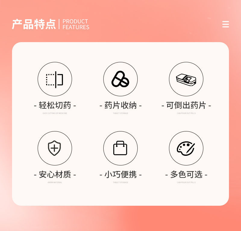 新しいピルカットボックス、ピルスプリッター、ピルカット機、ポータブルピルカッター、スリーインワン多機能ピルカットボックス