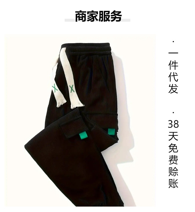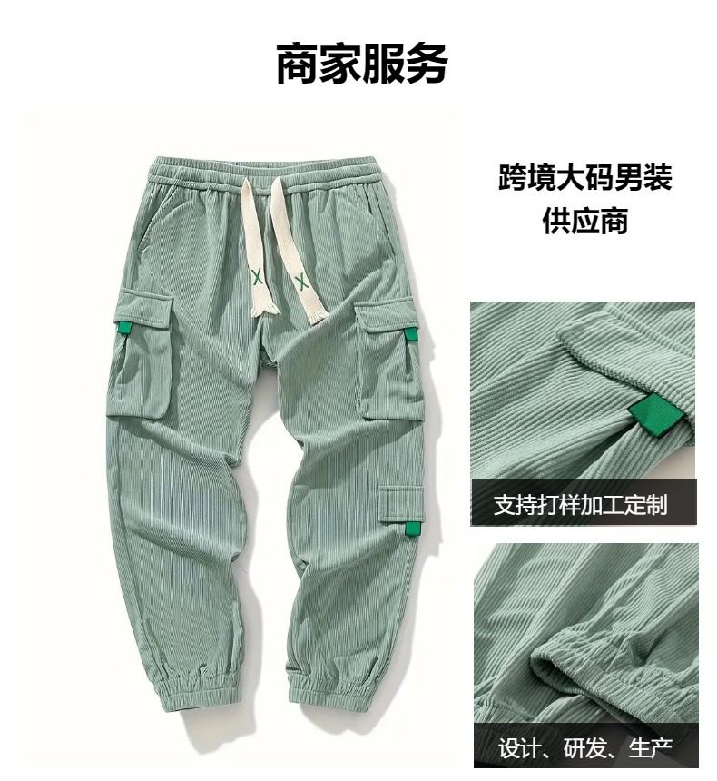 TEMU希音TK爆型コーデュロイ大サイズ男性工装ズボン格好いいヨーロッパコード束足ズボンファッション