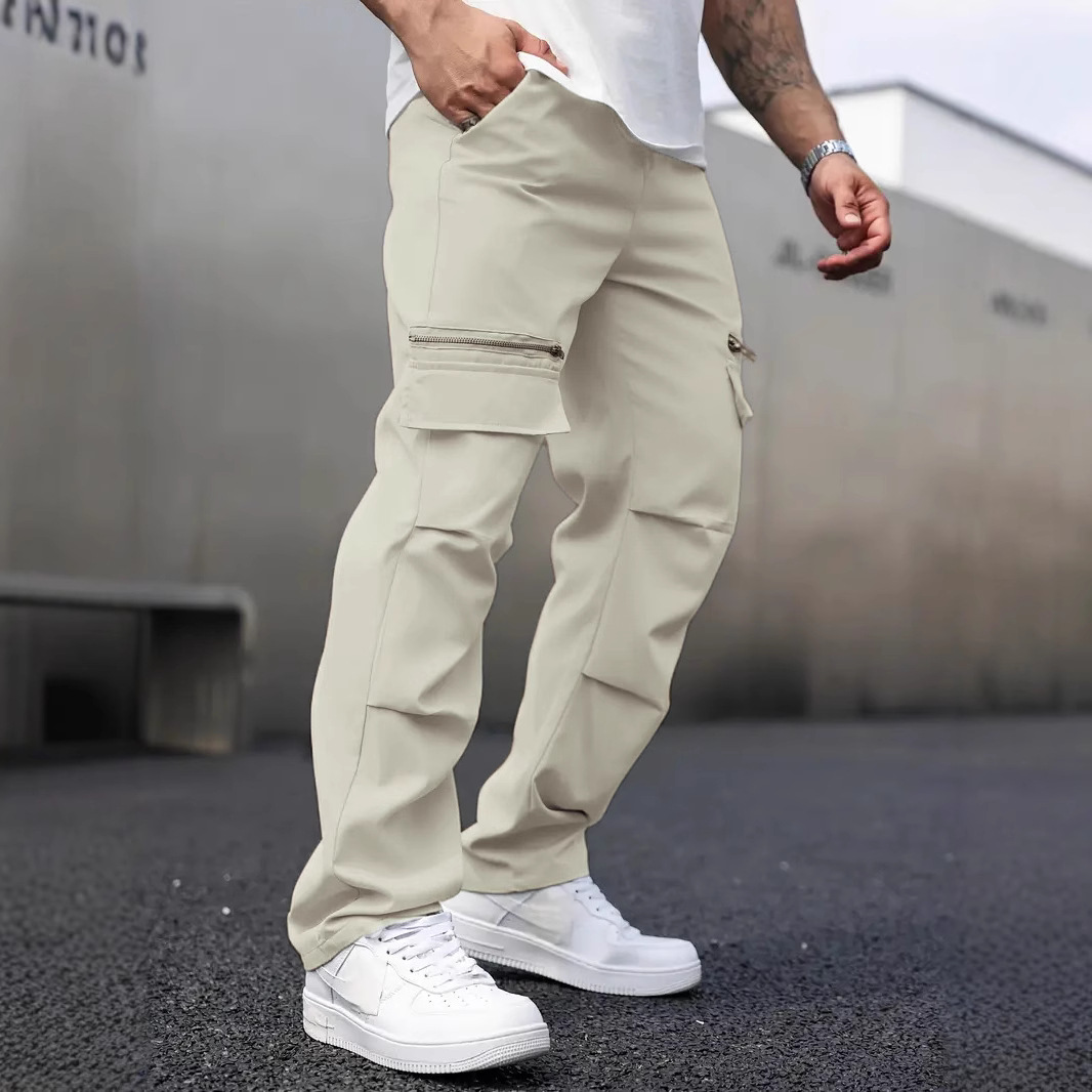 クロスボーダーのヨーロッパコードの大きいサイズの男性のカジュアルなズボンのファスナーの偽のポケットの設計2025の爆発的なファッションの潮流のストレートなズボン
