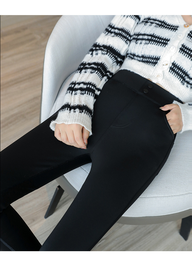 加绒打底裤女外穿春秋黑色魔术长裤子弹力冬加厚小脚铅笔裤九分裤