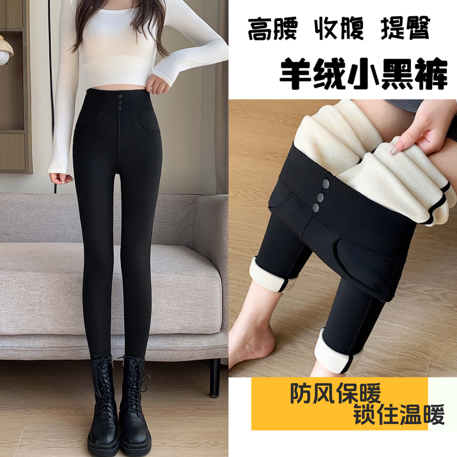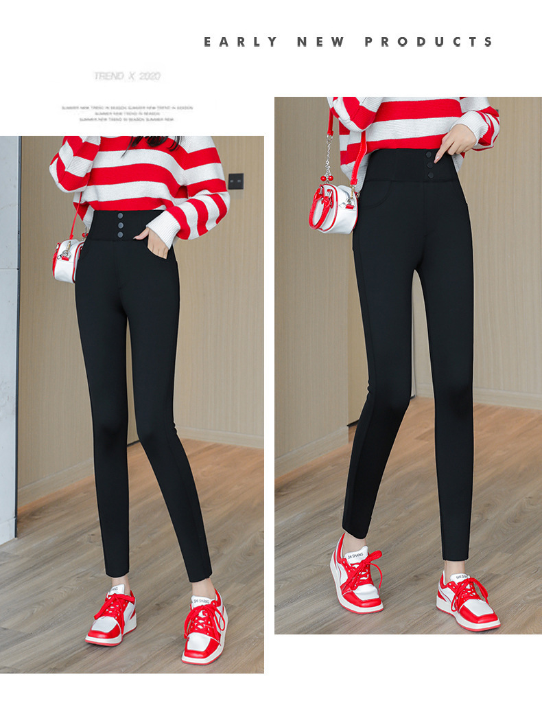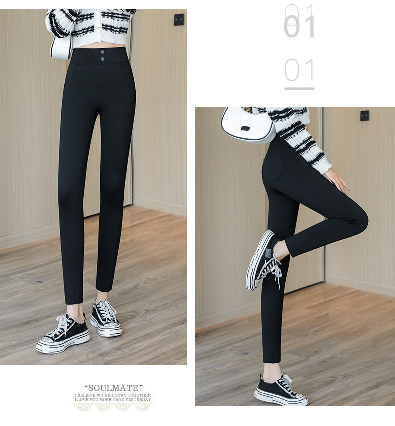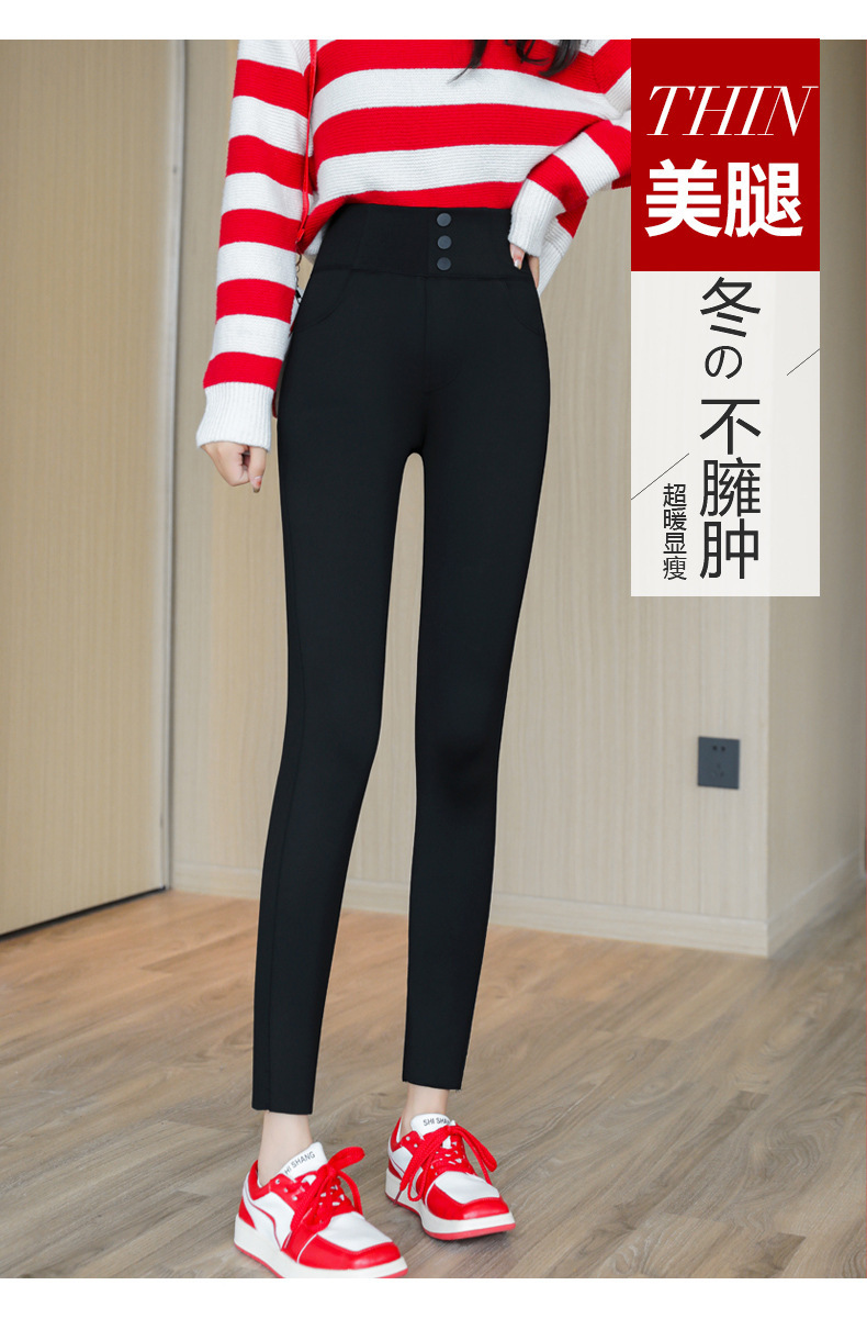 三防高腰小黑裤新款女外穿春秋加绒显瘦弹力魔术小脚打底裤子