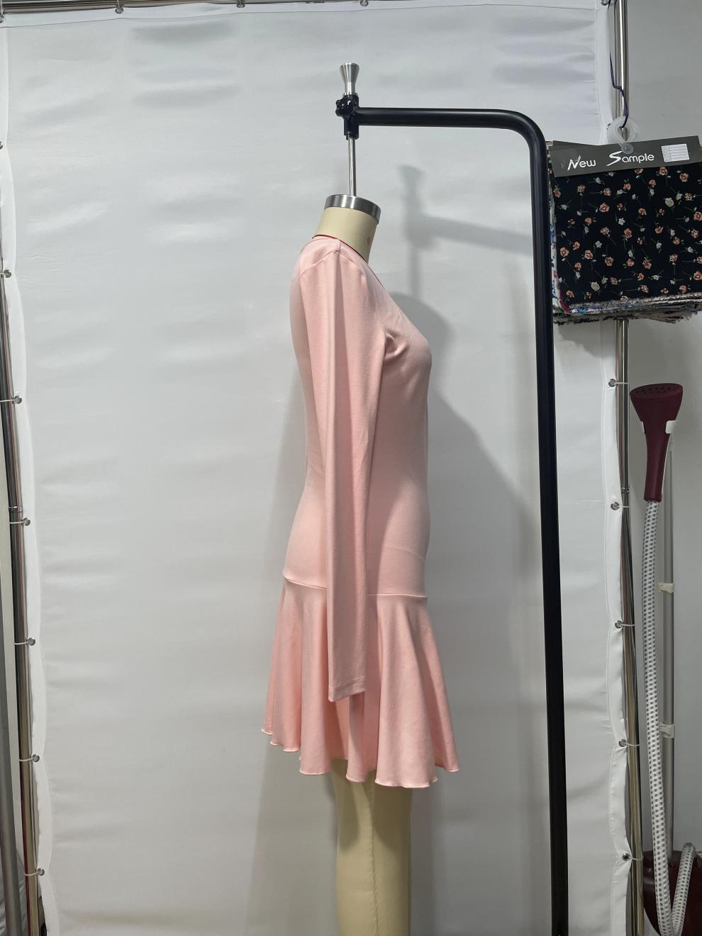 2024年新作レディースシックな小香り風ミドル丈メッシュスプライシング長袖ウエスト痩身ドレス