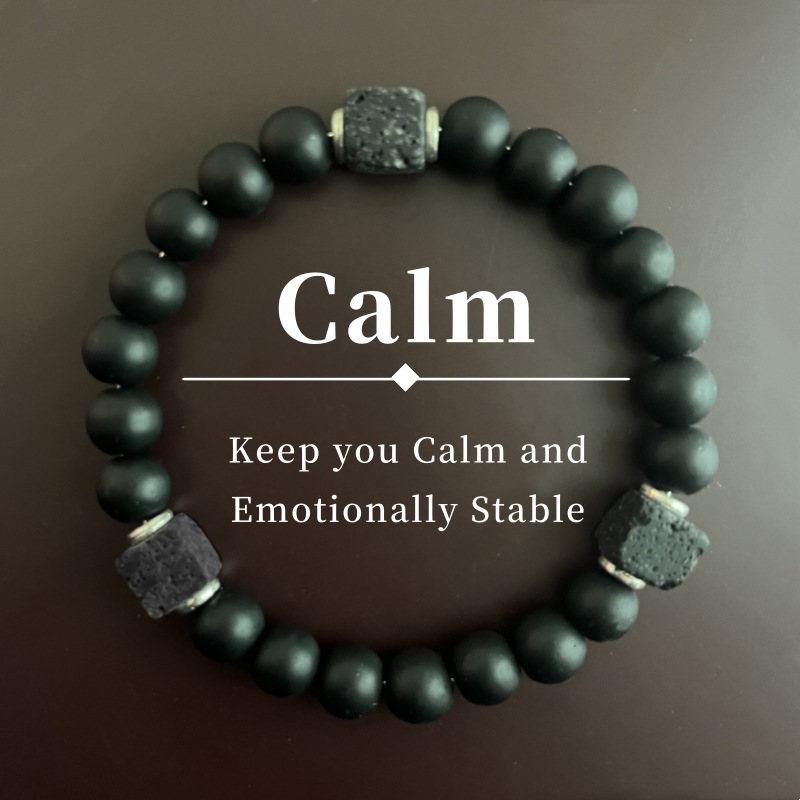 Temu希音TKクロスボーダー爆型火山石ブロック黒艶消し石金銀部品現代紳士ブレスレット現物