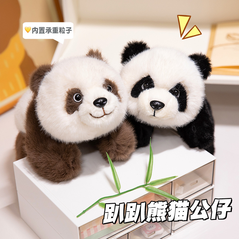 新型シミュレーション国宝パンダぬいぐるみ動物園かわいいうつ伏せ熊猫七仔人形人形卸売り