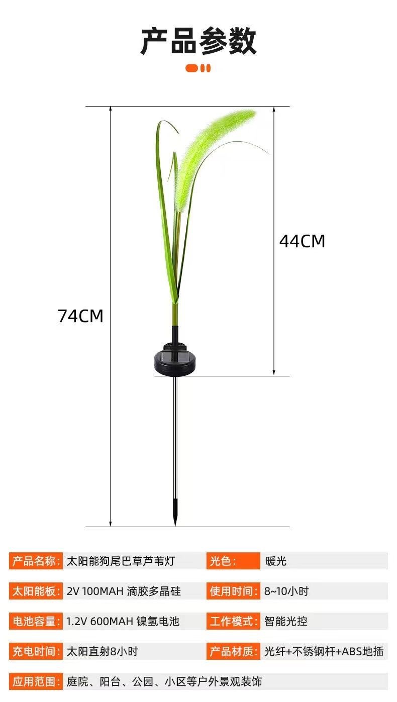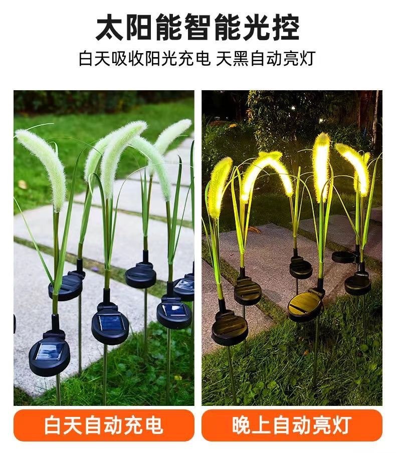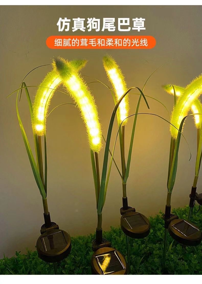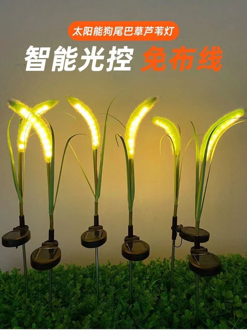 屋外防水シミュレーション太陽エネルギー犬尾巴草灯led発光葦灯庭園景観屋外装飾草