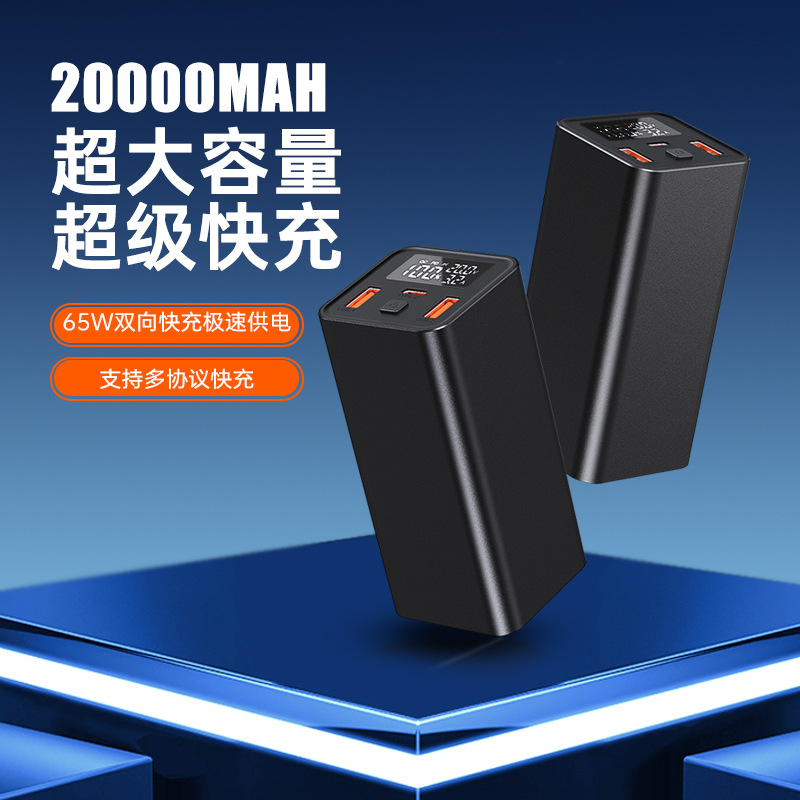 金属65w超高速充電モバイル電源ノート充電宝20000ミリアンペアリアルタイム電圧電流表示