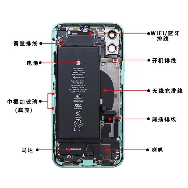 Apple XR オリジナル分解バックシェル iPhone11 ミドルフレームシェル XR ガラスフレーム 11 バックカバーアセンブリに適しています。