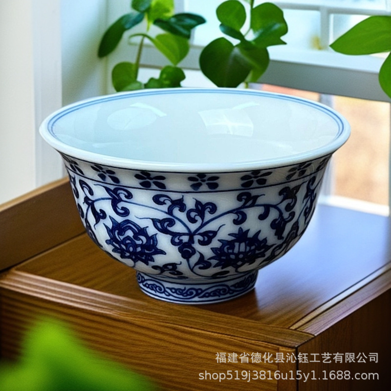 オリジナルの復刻釉薬に彩られた青花が枝蓮を巻いて手を押さえた陶磁器の主人杯の大容量の杯は古品の茗杯に似せています。