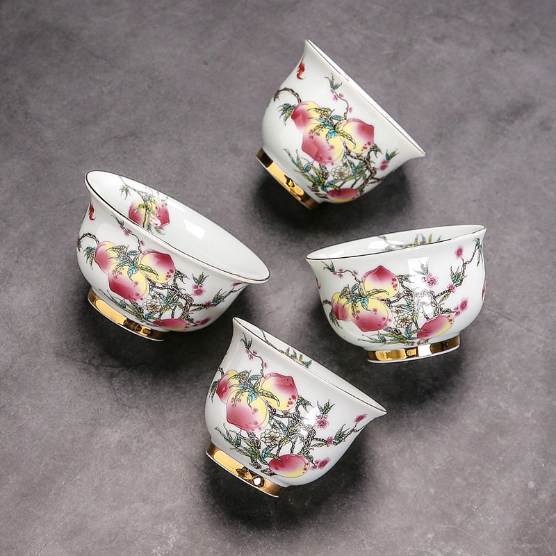 九桃五福ティーカップ、アンティーク景徳青と白の釉薬赤ティーカップ、寿桃プレスハンドカップ、ラージマスターカップ、シングルカップ