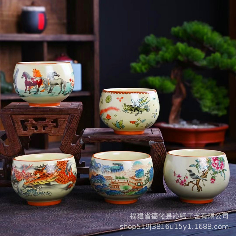 古青花釉薬の中彩圧手杯の工夫茶道具千仏五仏の枝蓮の主人杯禅意茶道カップ