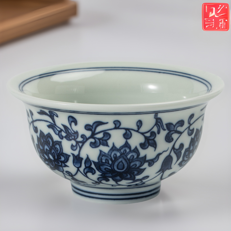 永楽青花圧手杯陶磁器手作り古品茗杯の枝蓮個人専用主人杯高級カップ