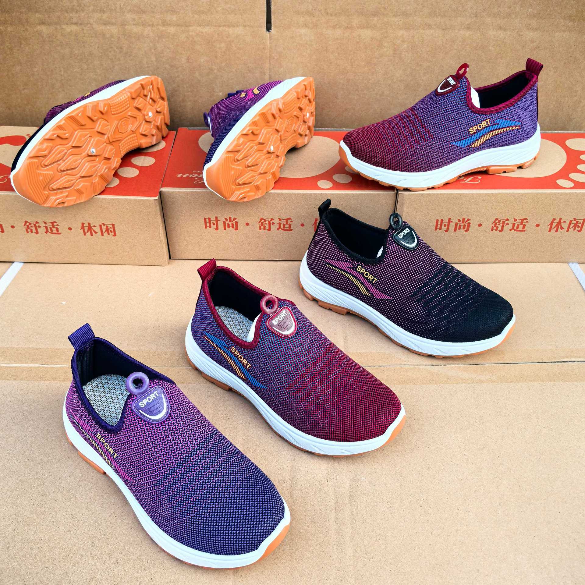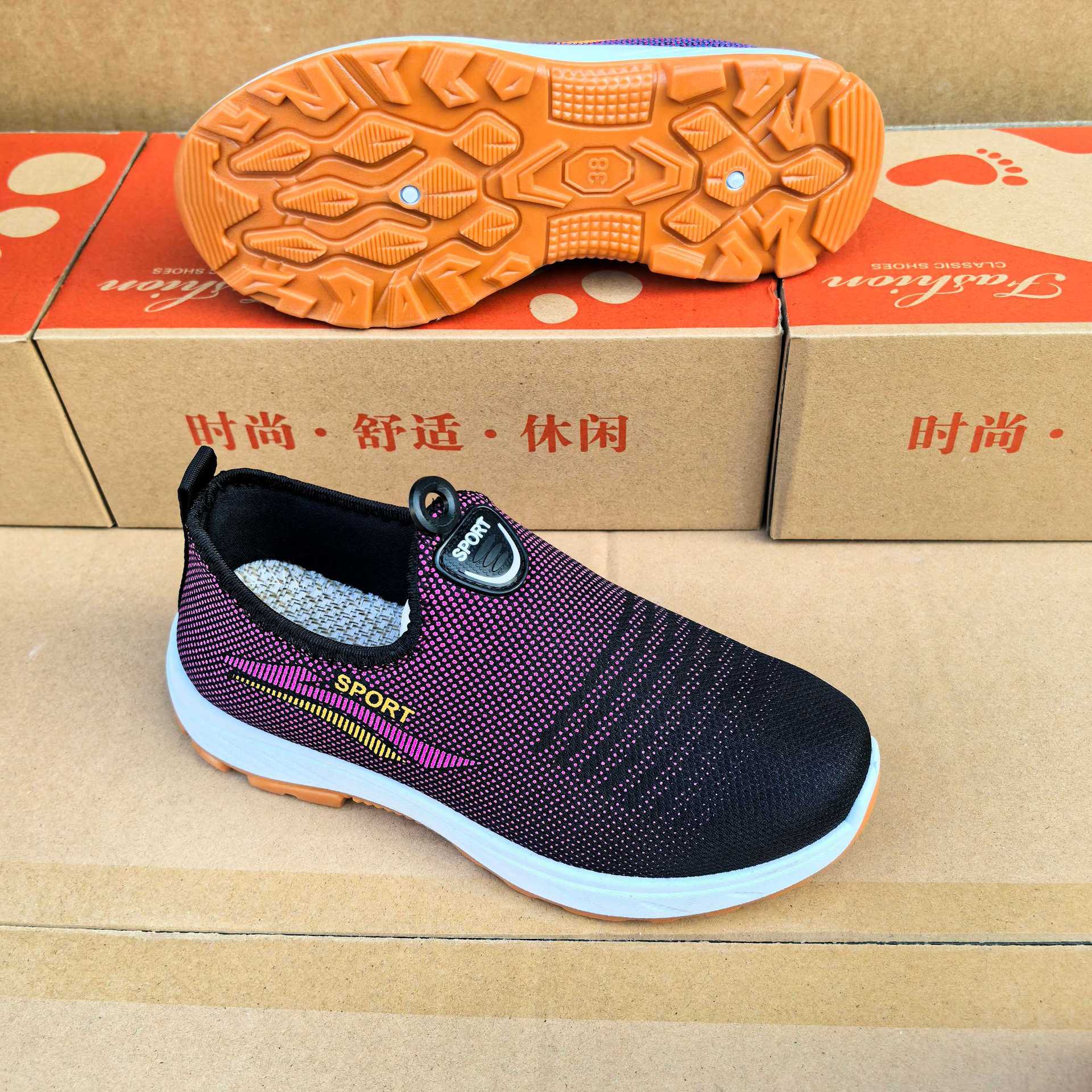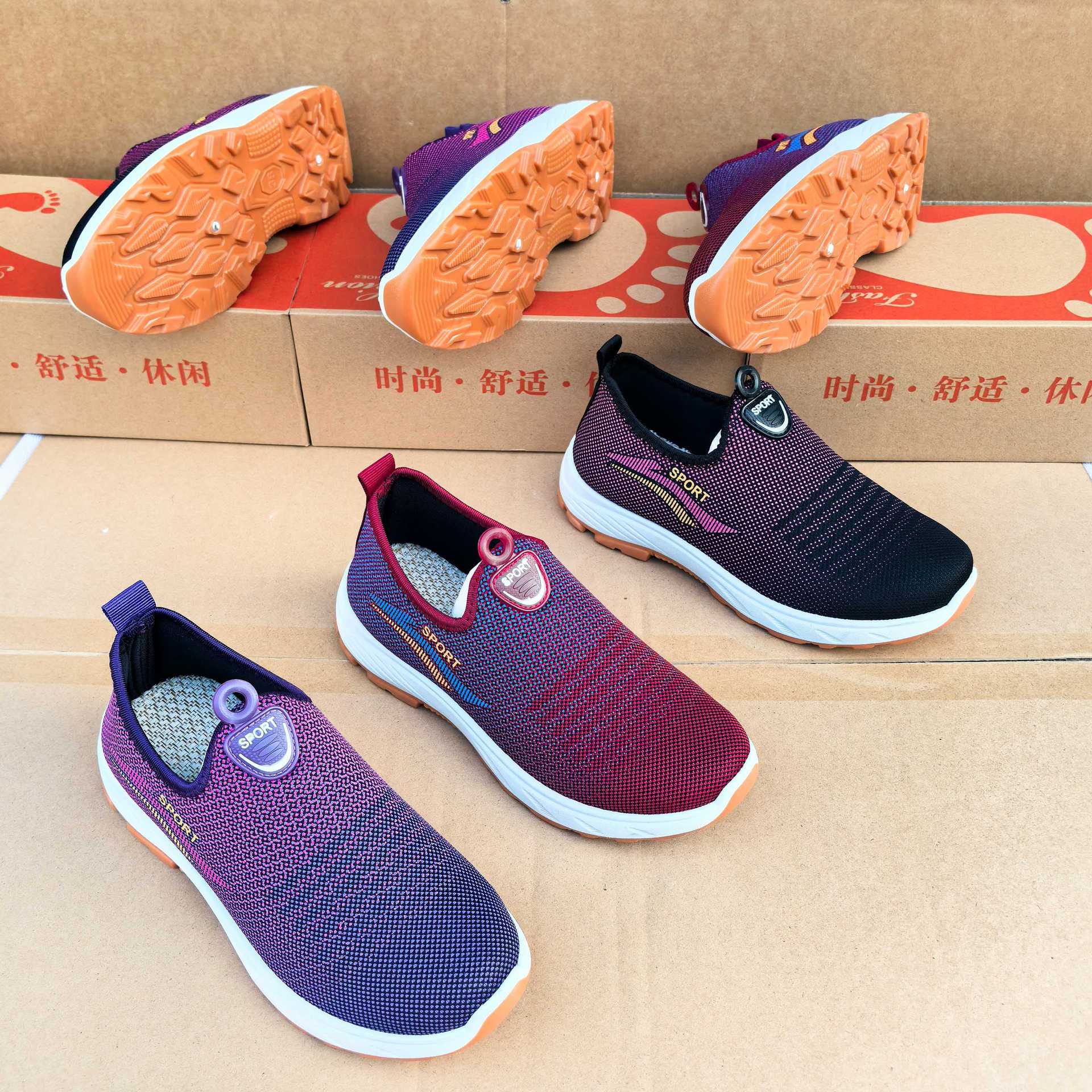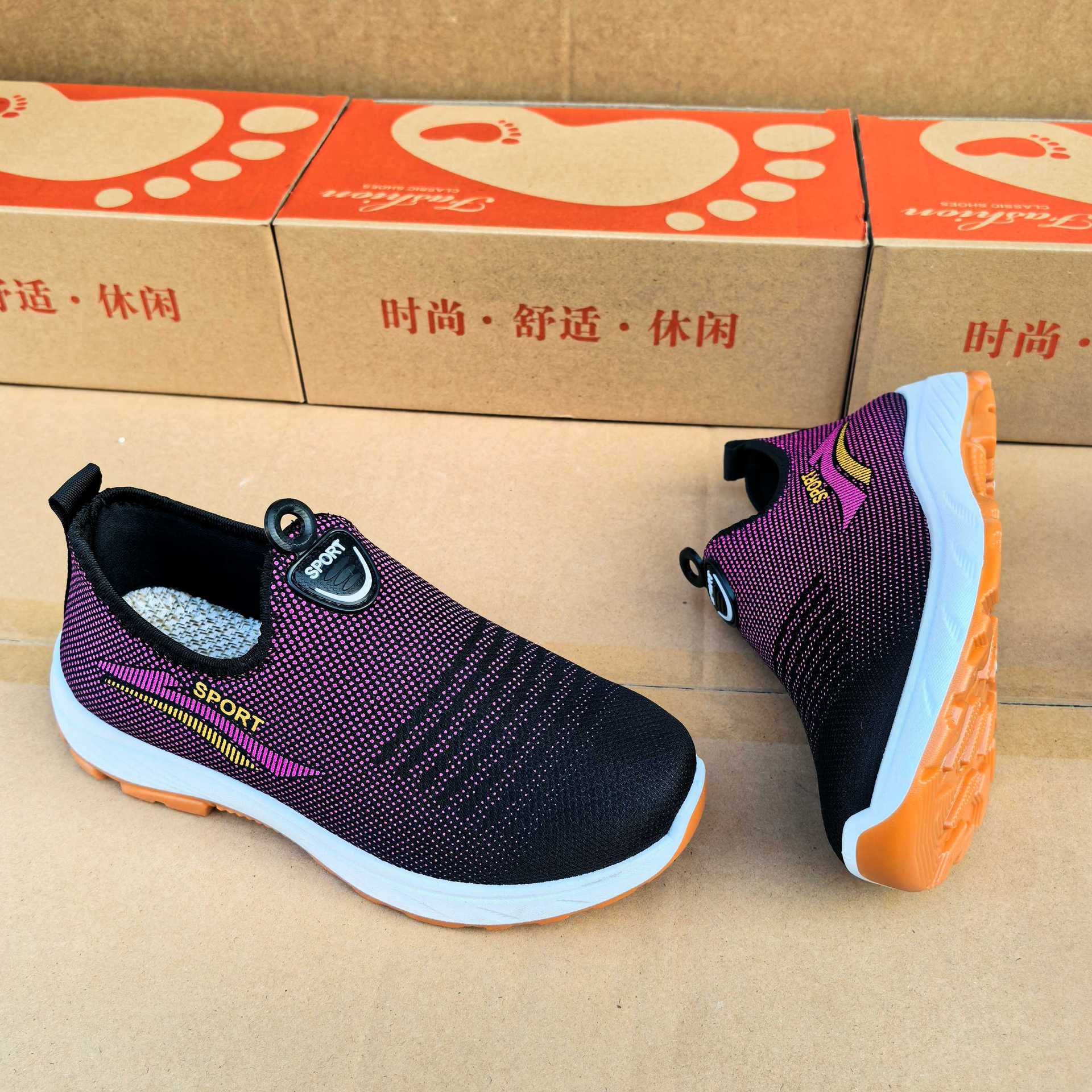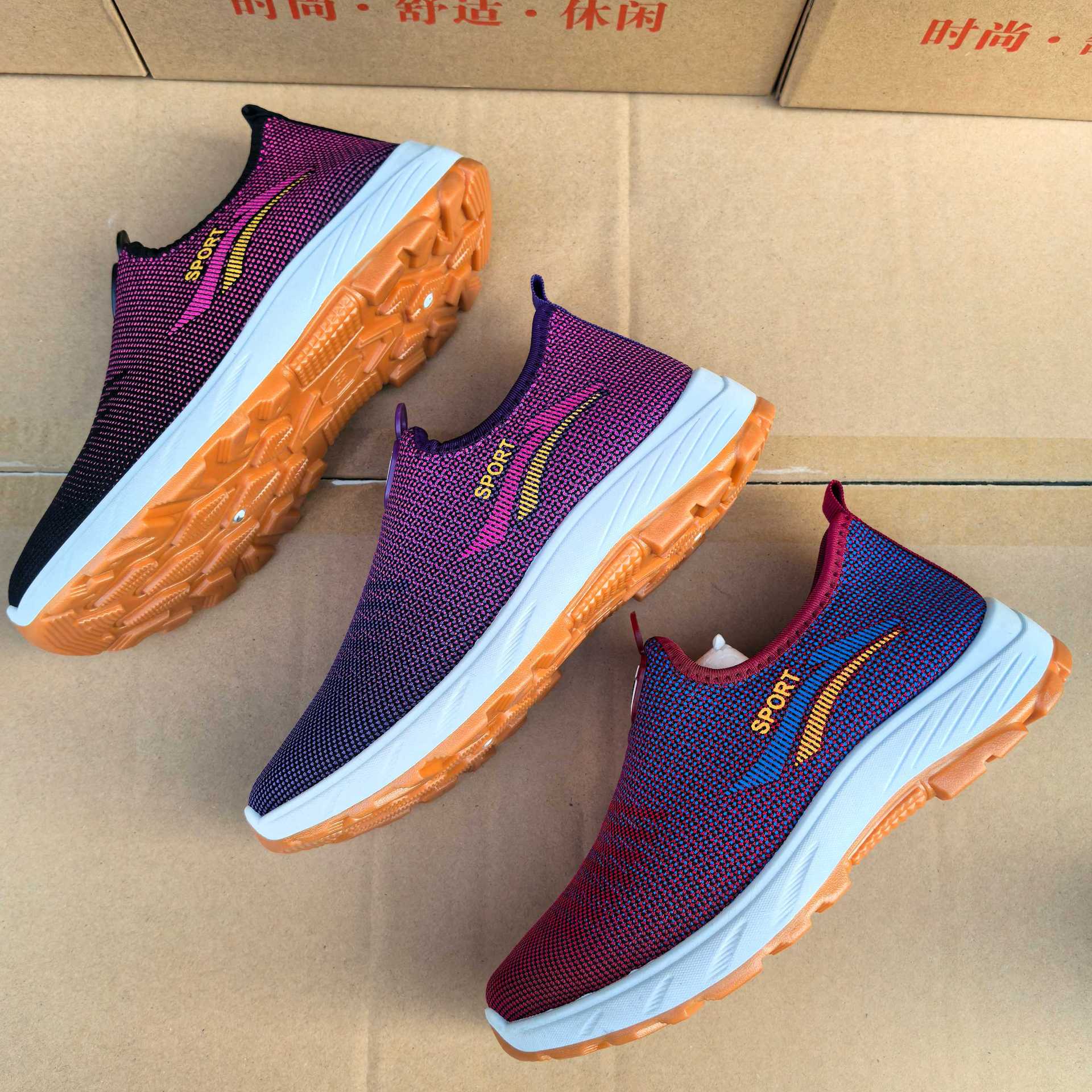 春と秋の新型女性のカジュアルな靴の一枚の飛織と底片の女性の靴の屋外の通気性の中高年の女性の靴