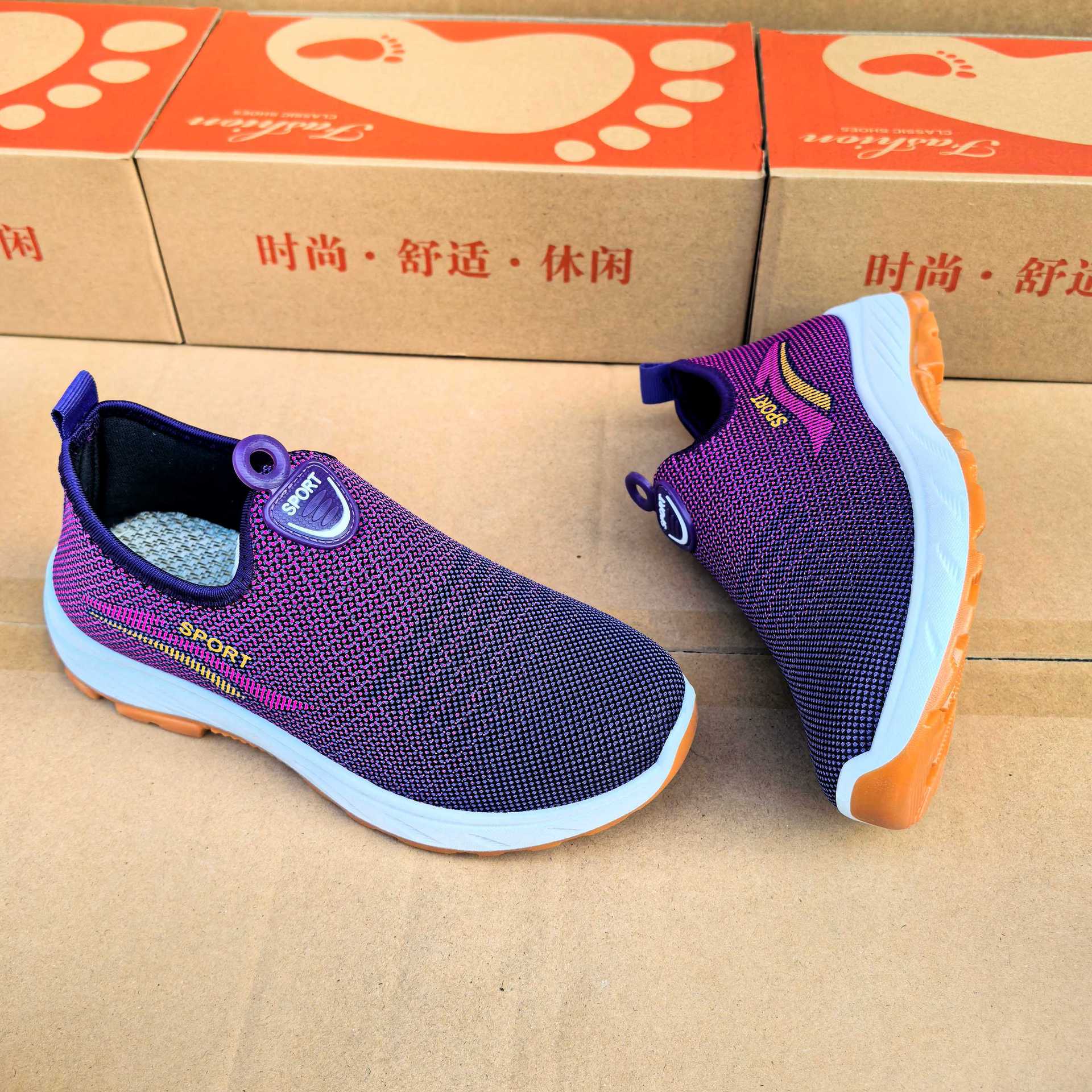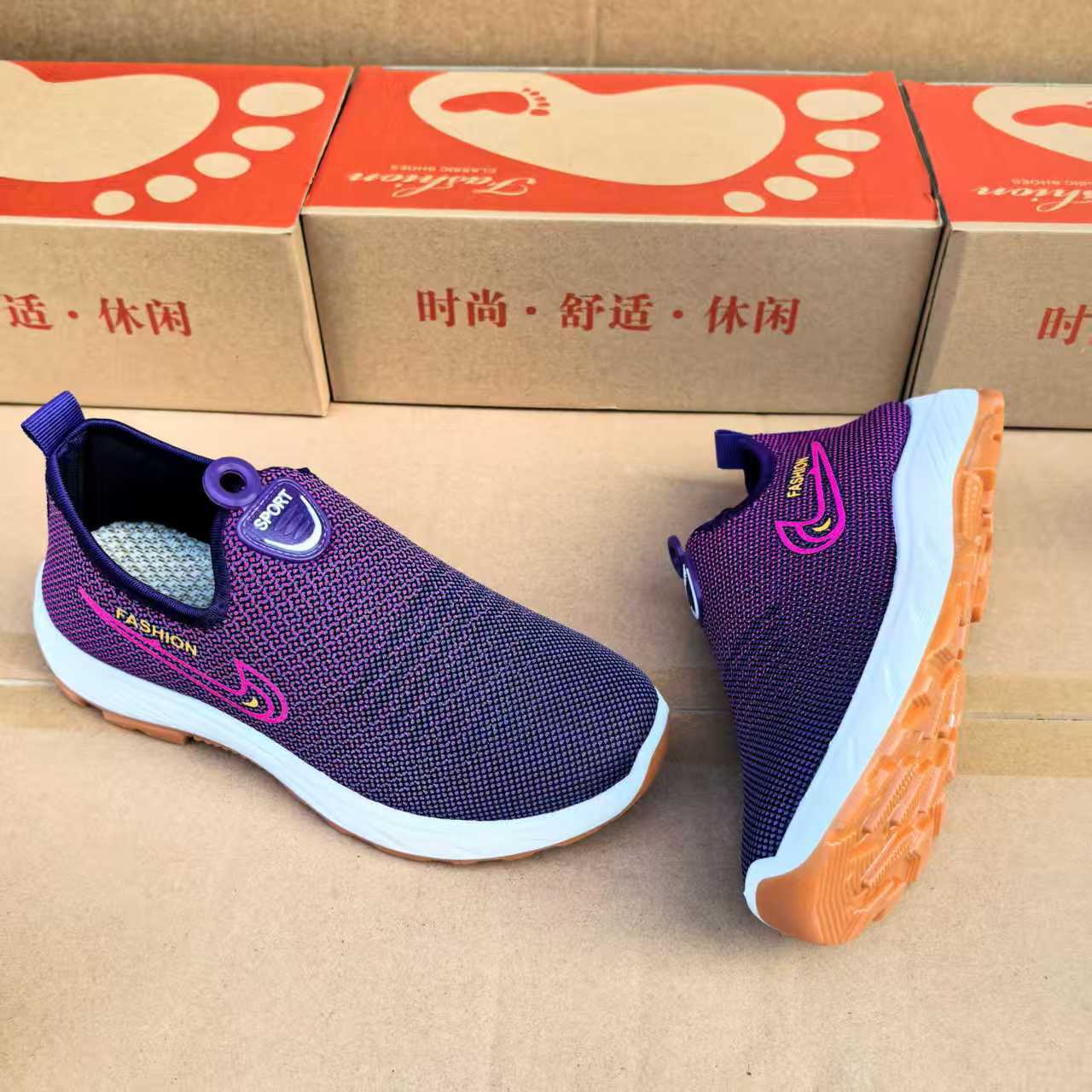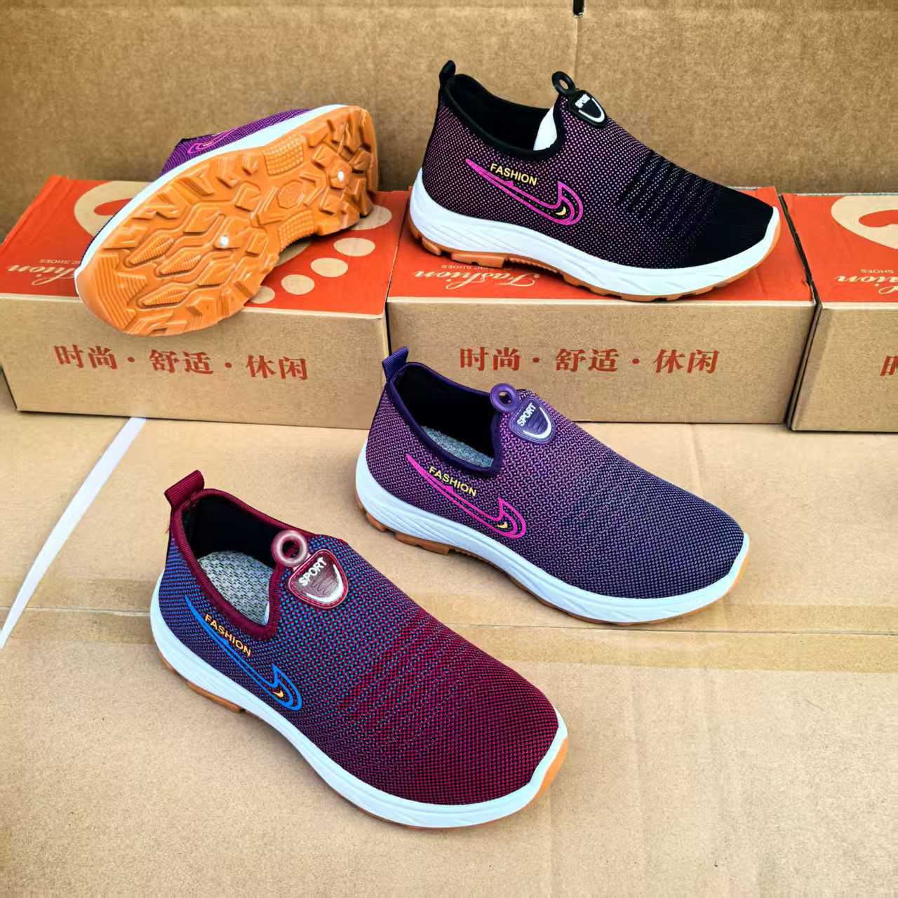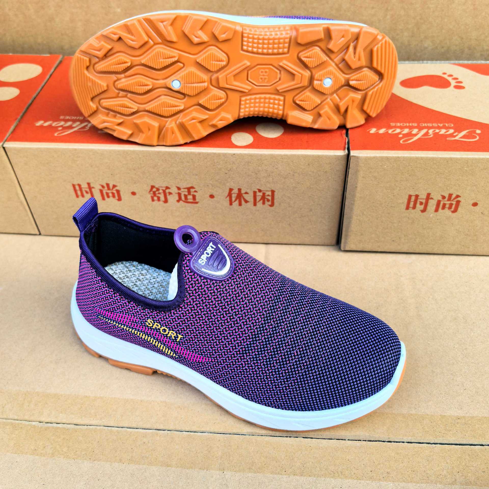 春と秋の新型女性のカジュアルな靴の一枚の飛織と底片の女性の靴の屋外の通気性の中高年の女性の靴