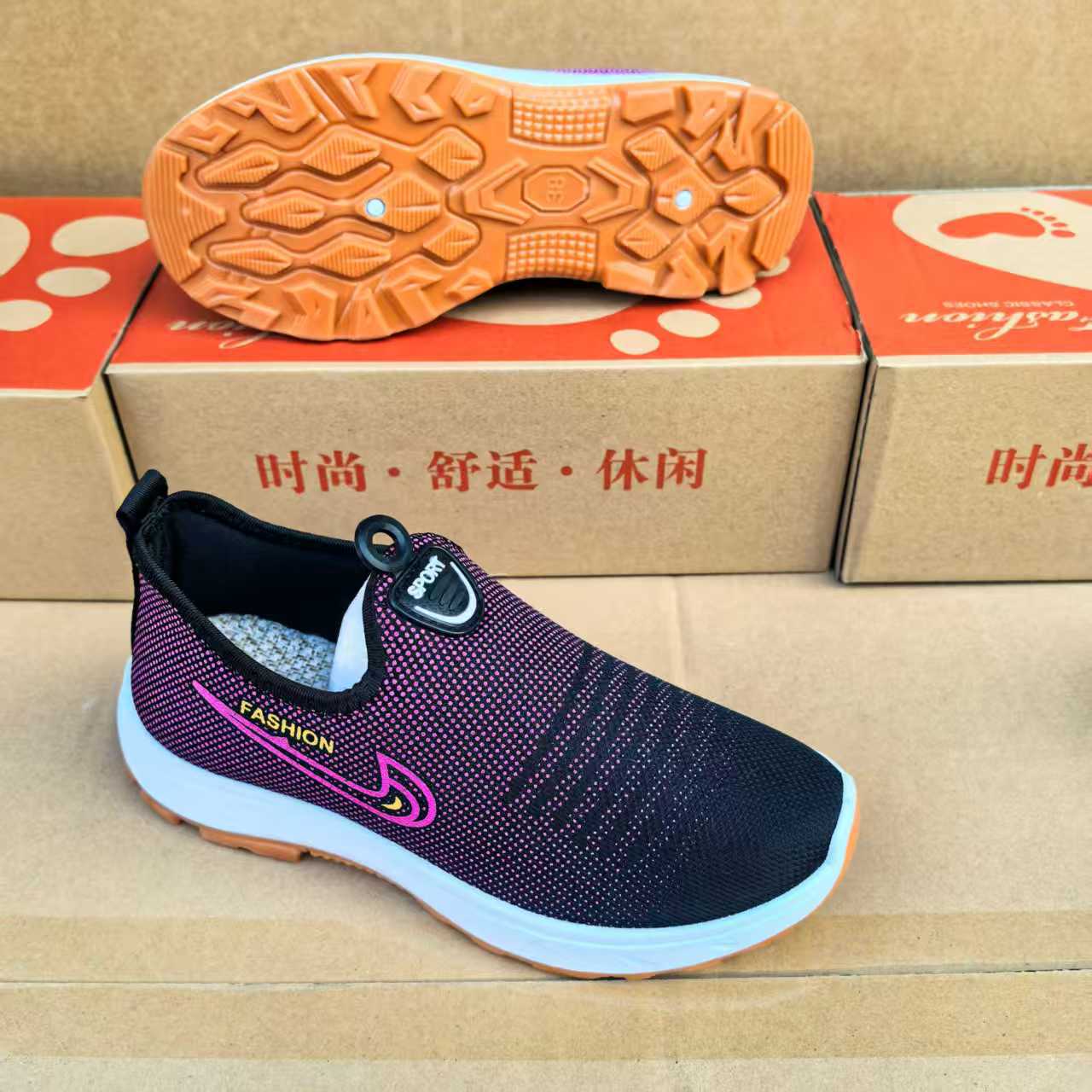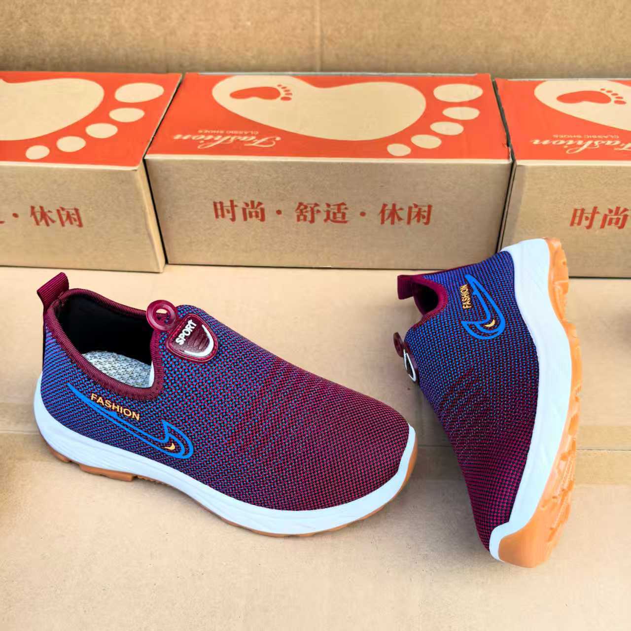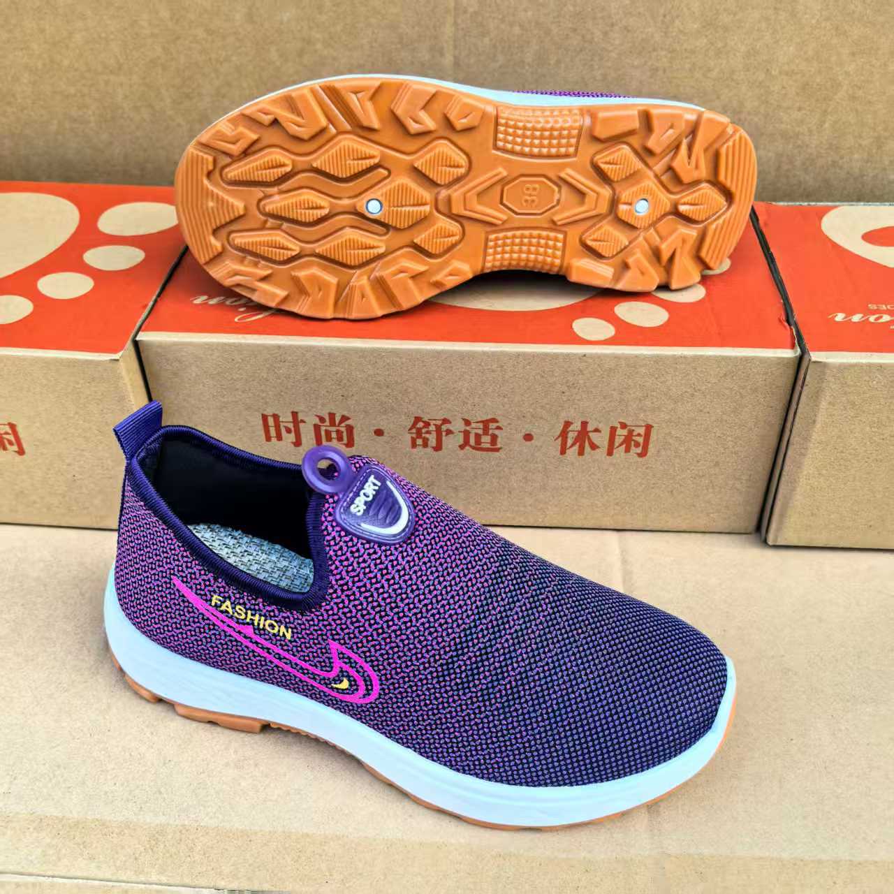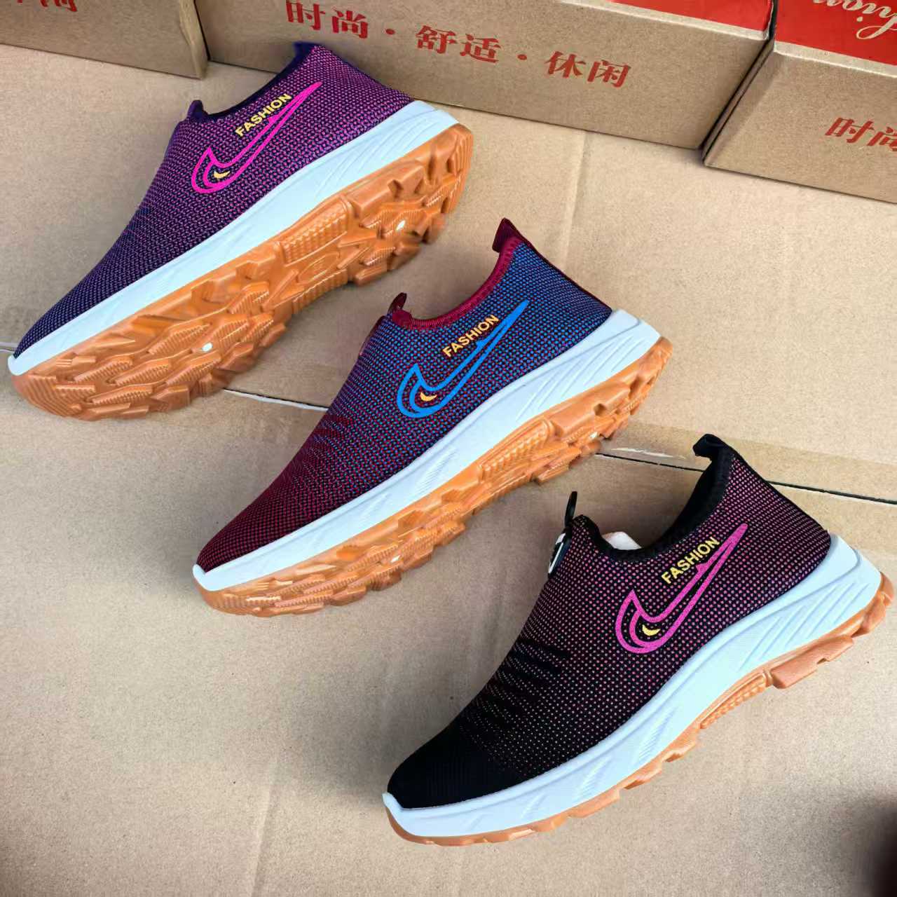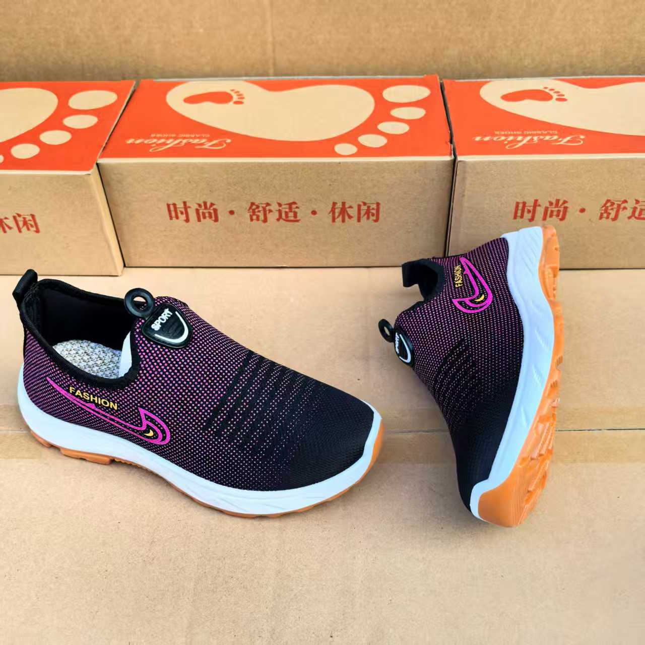 春と秋の新型女性のカジュアルな靴の一枚の飛織と底片の女性の靴の屋外の通気性の中高年の女性の靴