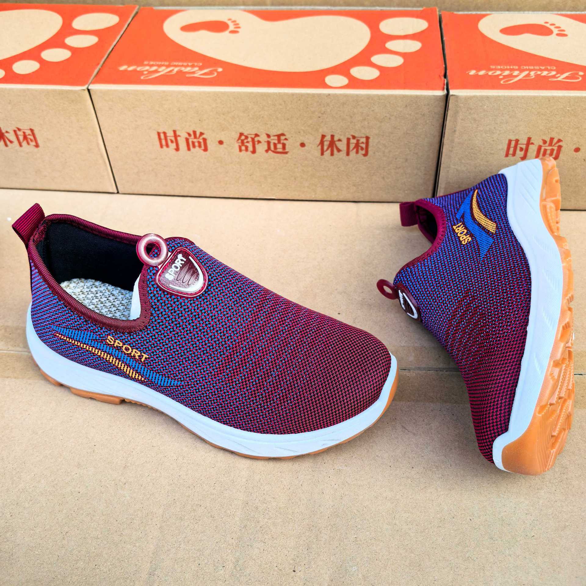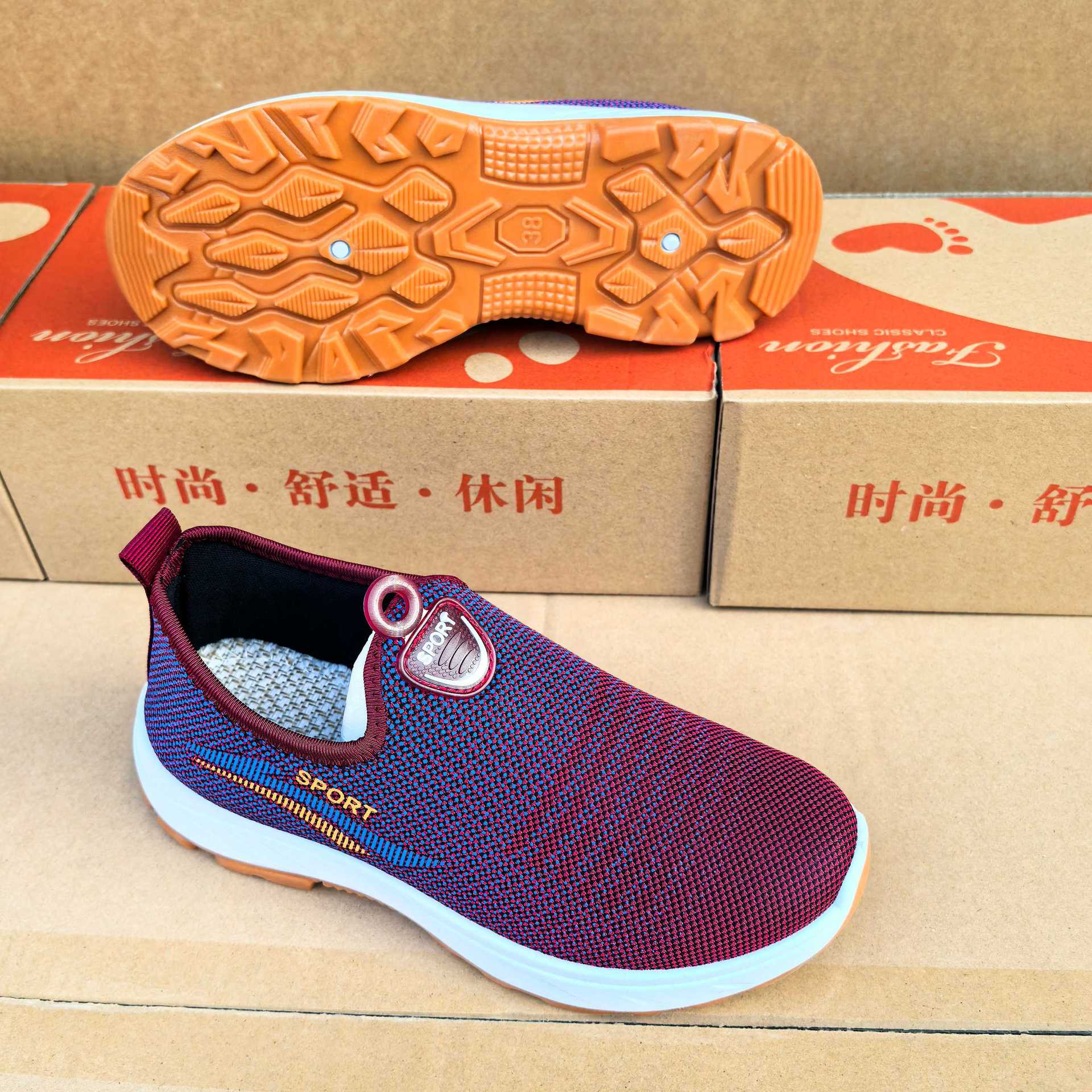 老北京布鞋女飞织加海绵女士一脚蹬单鞋加厚底耐磨中老年妈妈鞋子