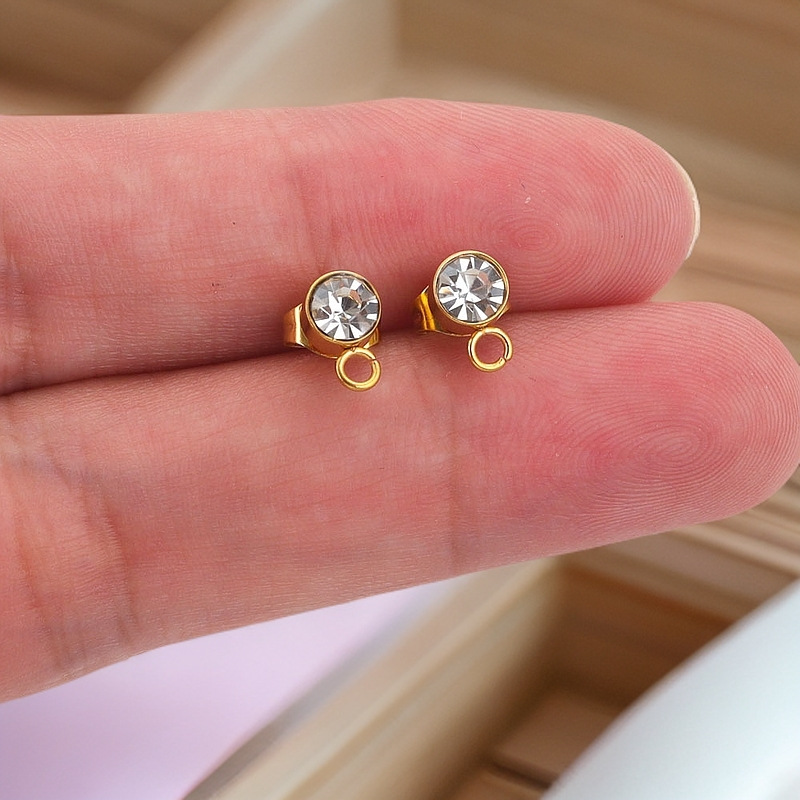 韓国版ファッションステンレス金メッキピアス部品卸売り創意個性デザイン帯鋼輪diyジルコン耳飾り