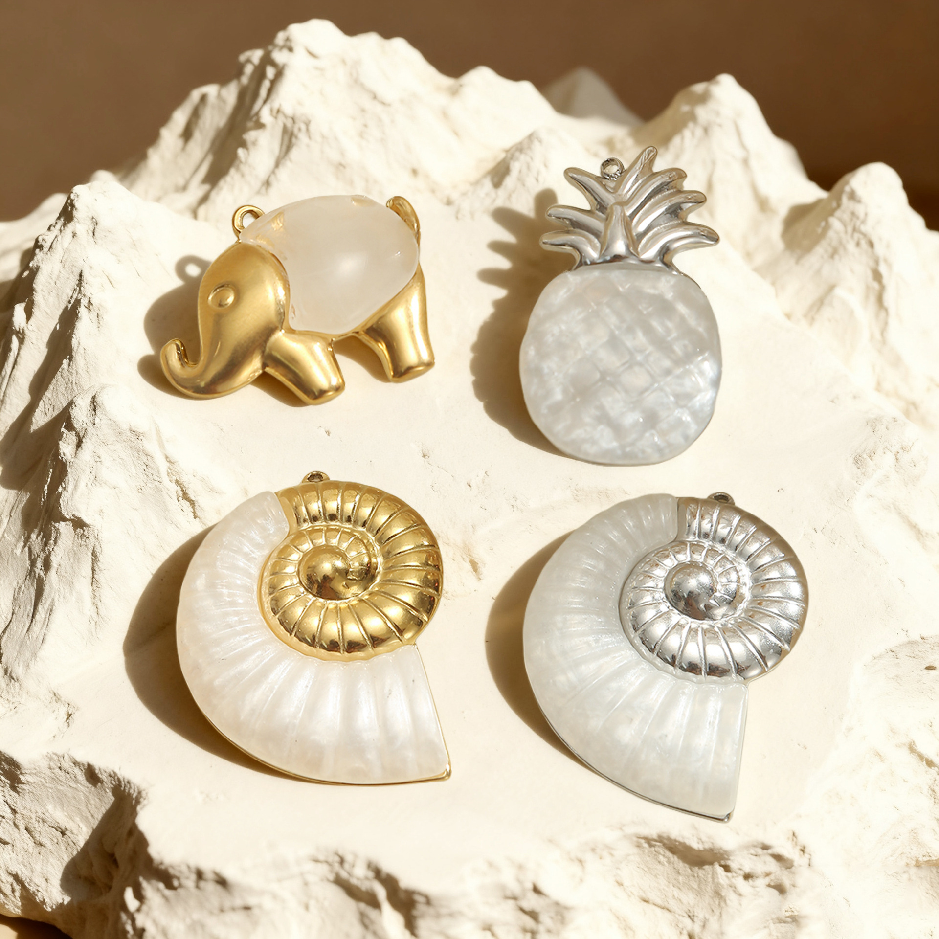 动物海螺菠萝大象吊坠不锈钢拼接树脂挂件 DIY 手链项链饰品配件