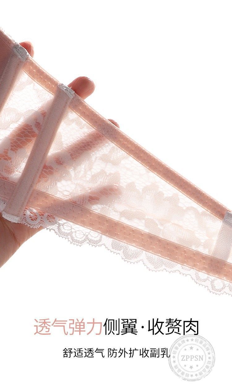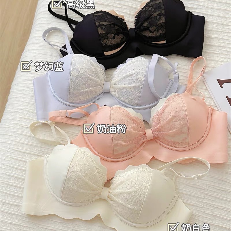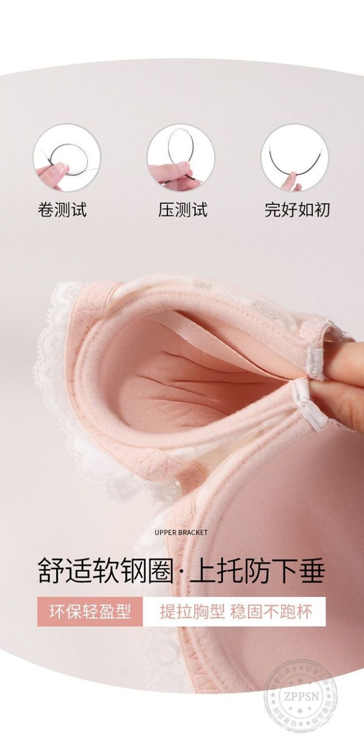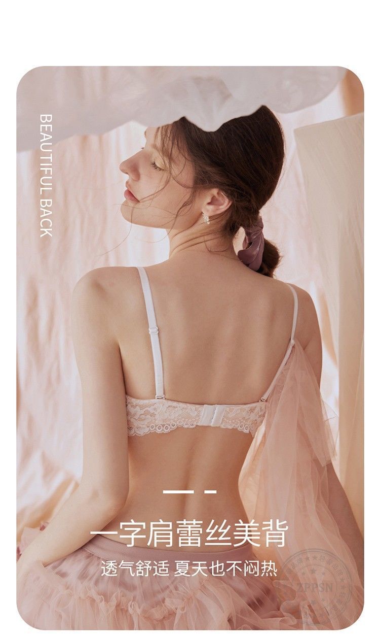 フランス風純粋な魅力のランジェリー、小胸女性向け、美背見せ、レースでバストアップ効果、ソフトワイヤー入り、調整可能な副乳補正、シームレスブラ。