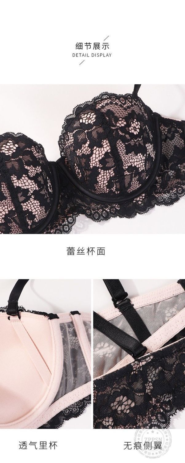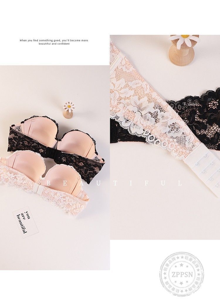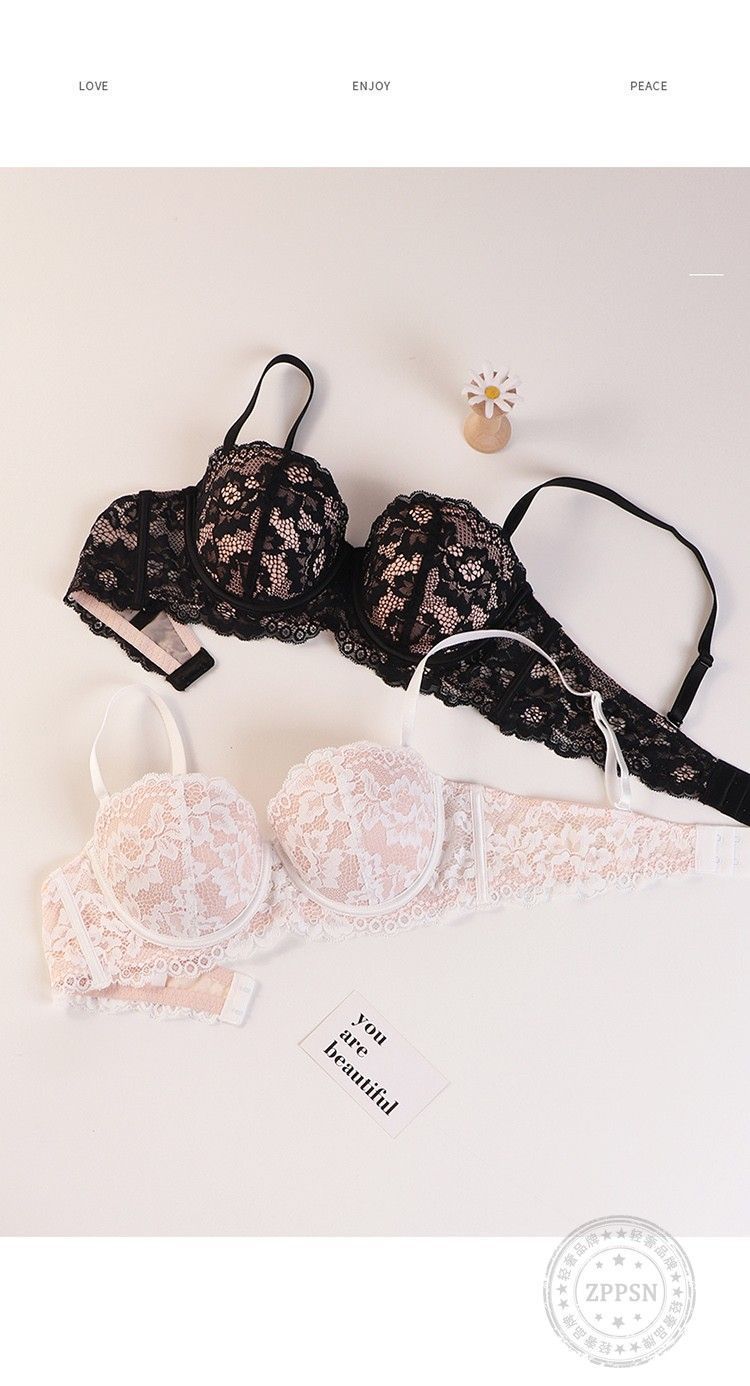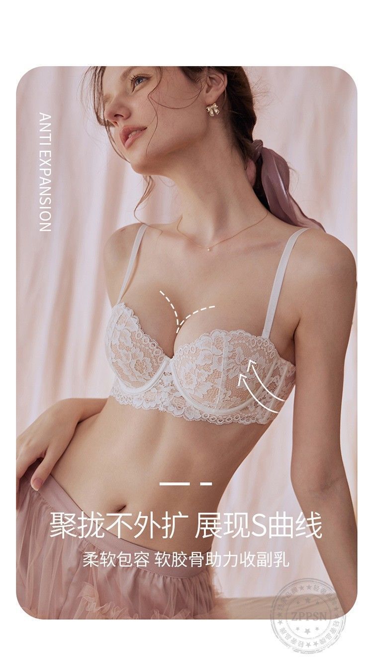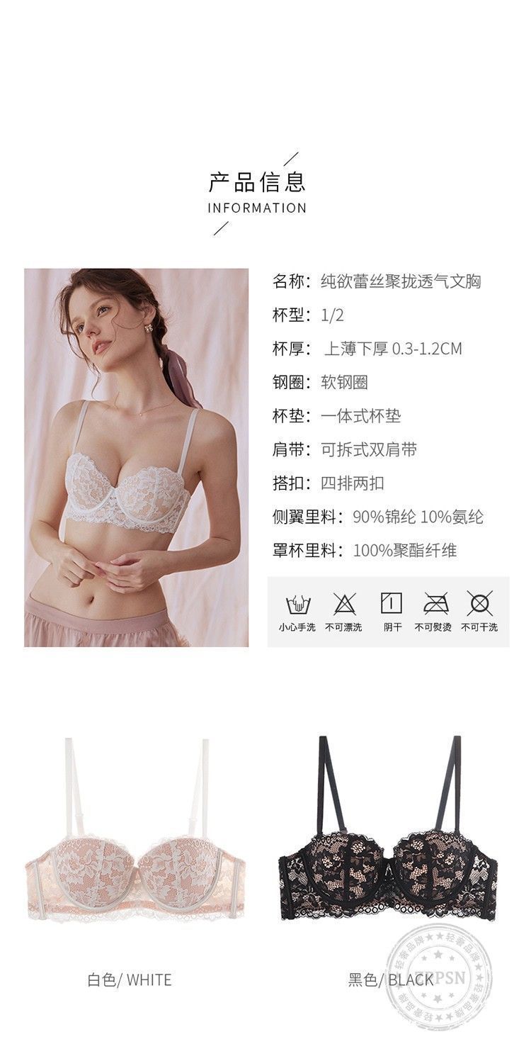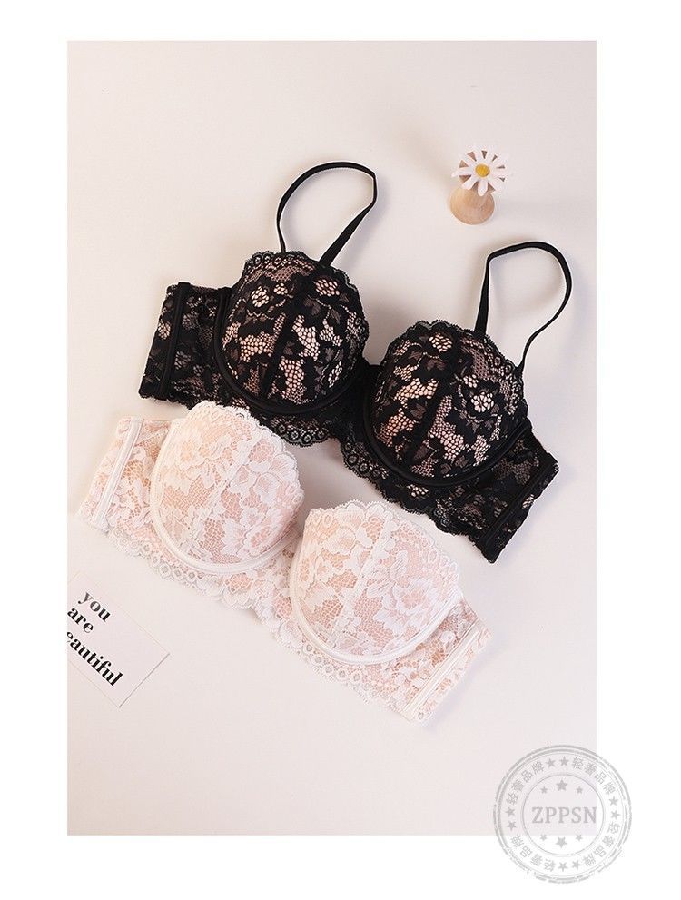 小胸用プッシュアップブラ、垂れ防止レースハーフカップノンワイヤーブラ、ガーリーで純粋な魅力、シームレスで快適なブラジャー