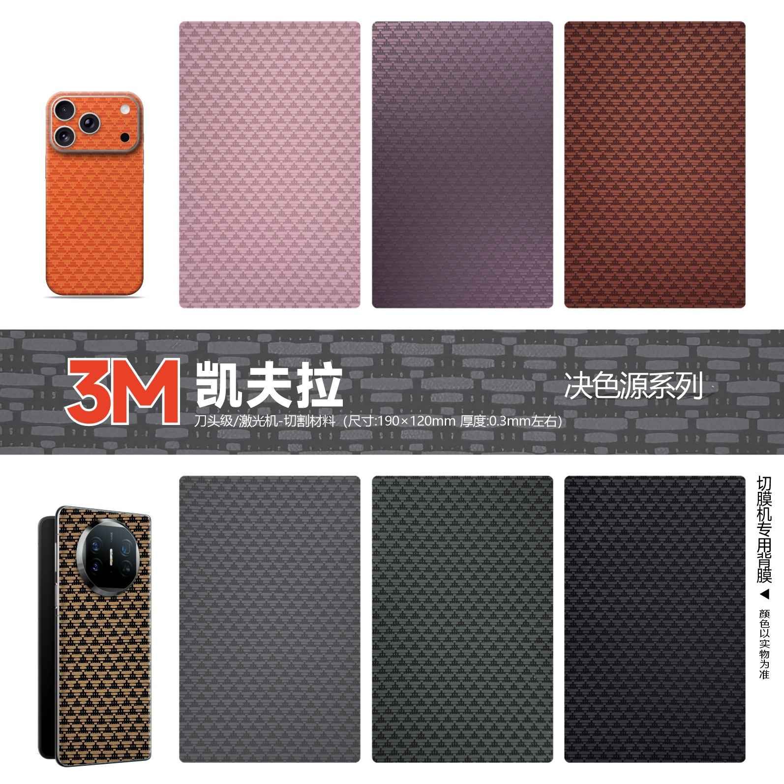 3M决色凯夫拉手机背膜彩盾纹凯夫拉全包膜素皮压纹切膜机通用膜