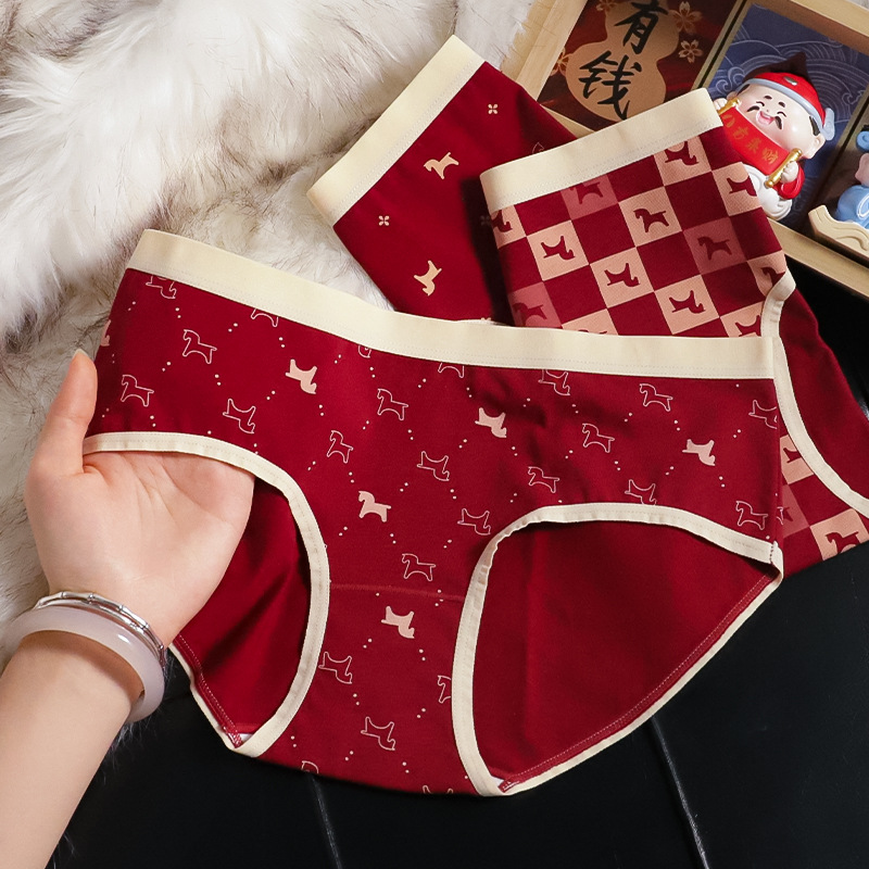 日本系秋冬兎年本命紅下着女性低腰モーダルレッド新年結婚通気綿股三角ズボン