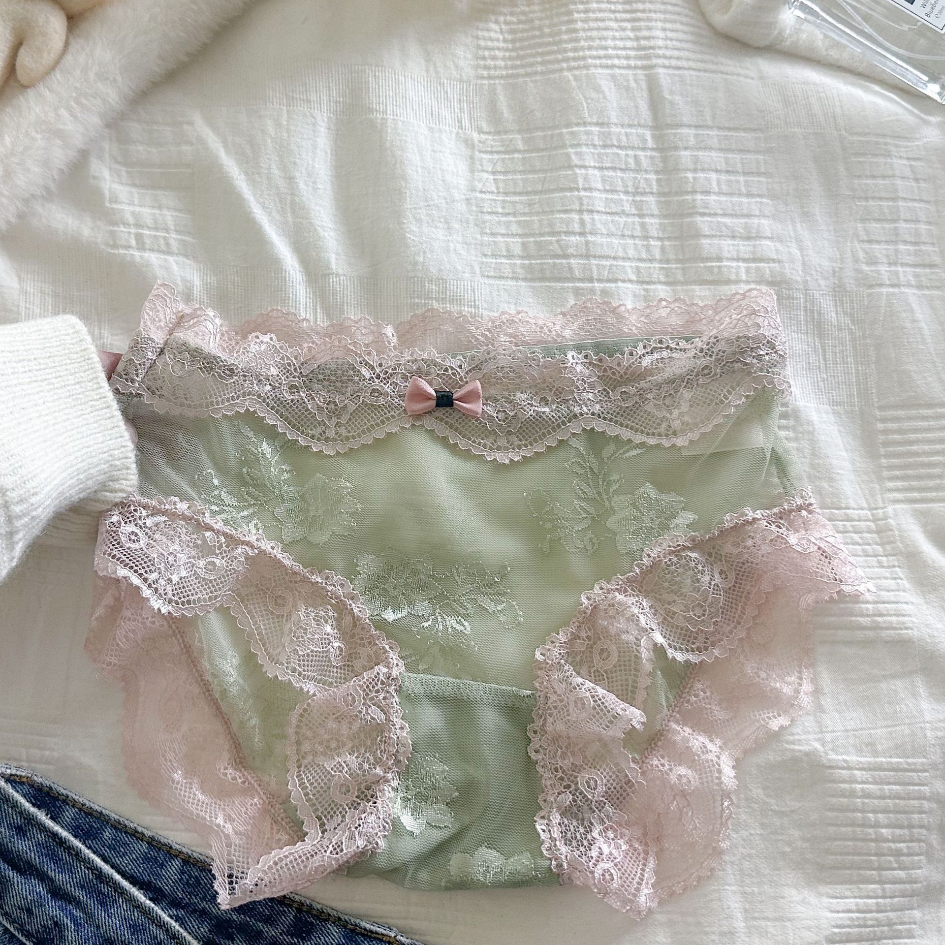 軽酸素レース ~ フレンチ式のセクシーなサテンの下着の低い腰の宮廷の風のレースの純粋な欲の純綿の段の三角のズボンの女子学生
