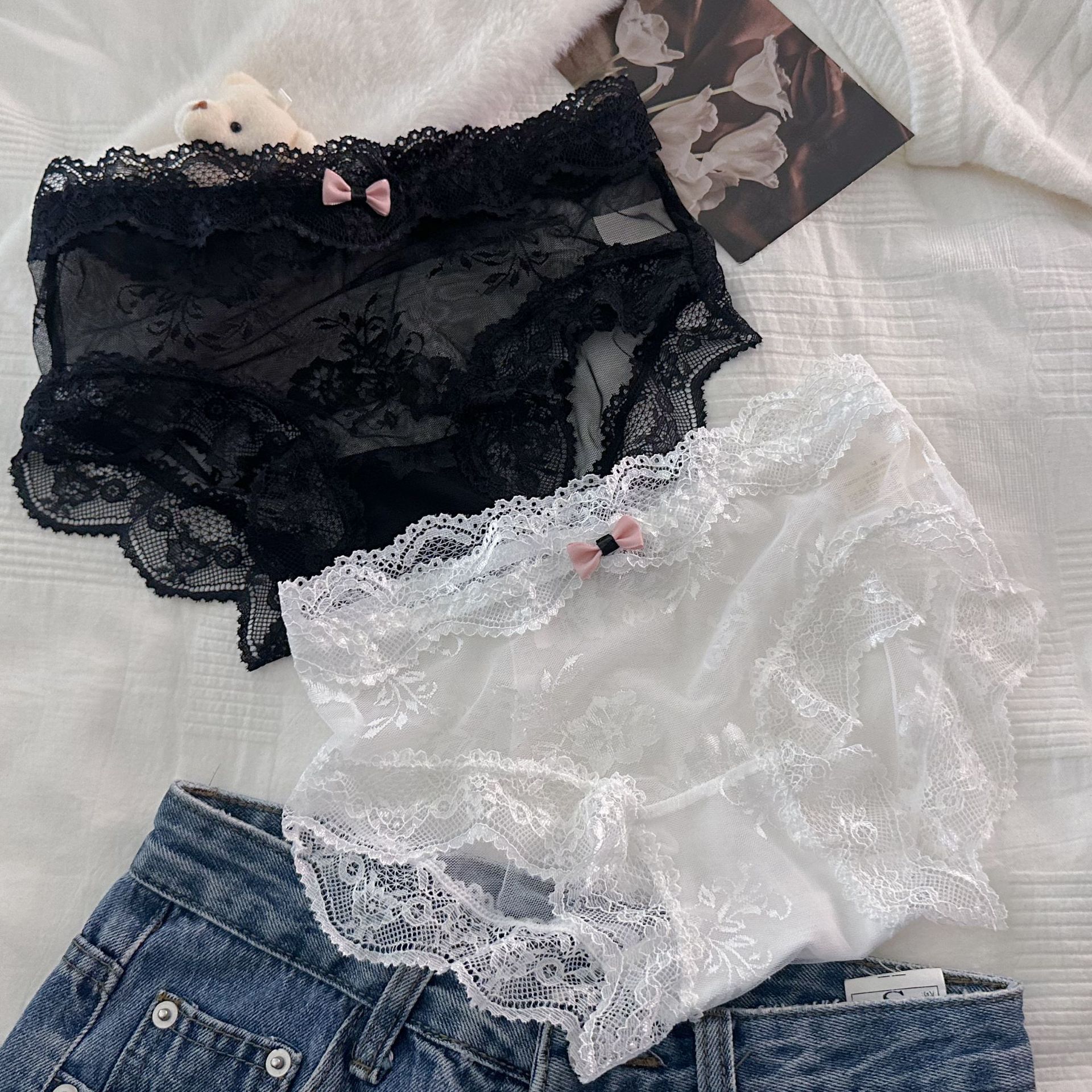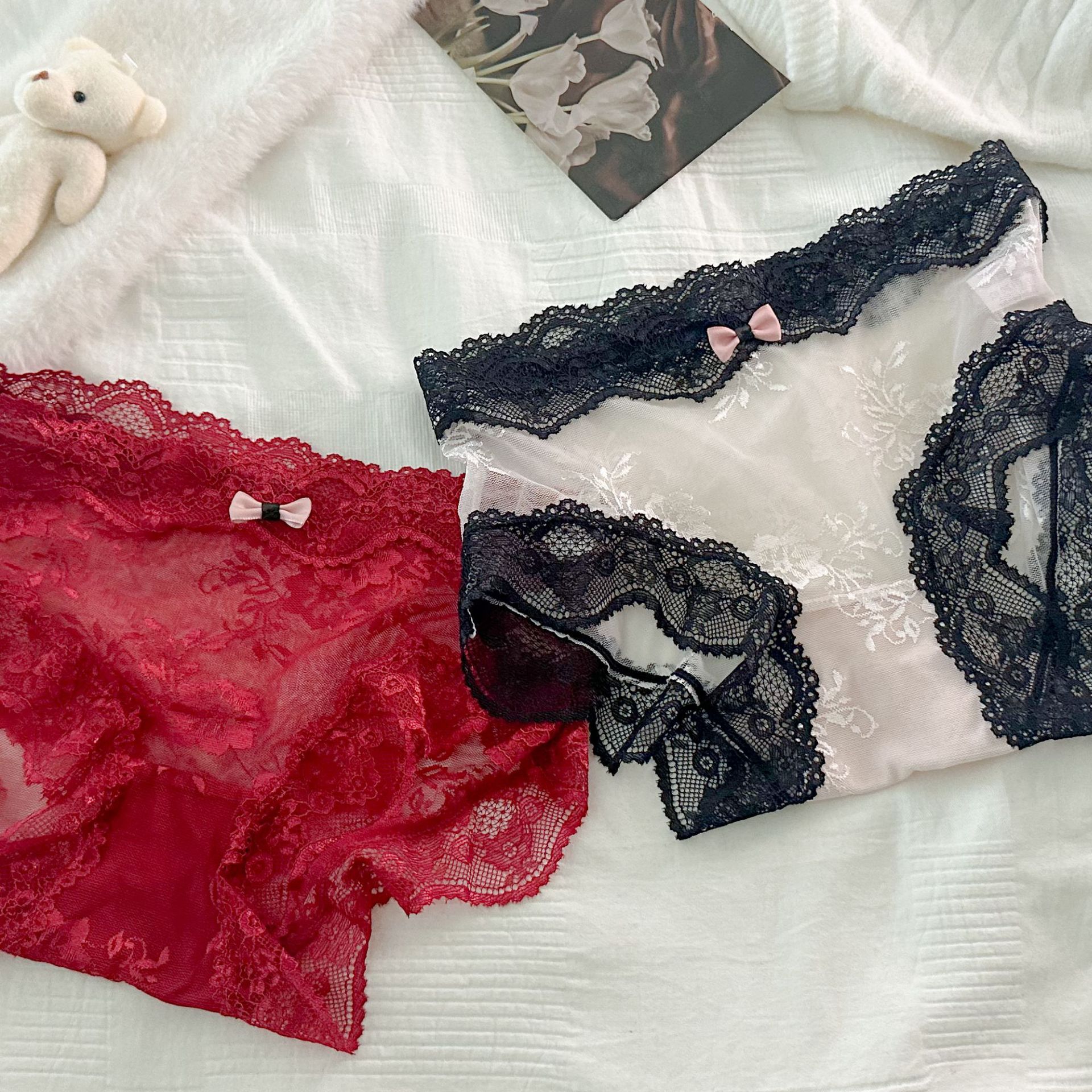心の夜 * 日本のセクシーなレースの下着の少女の低い腰の透かし彫りの網の糸の通気性の綿の股の三角のズボン