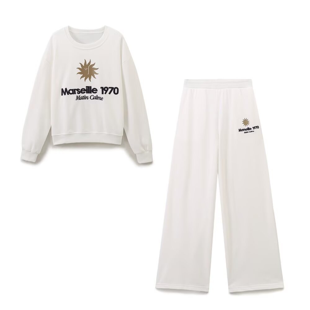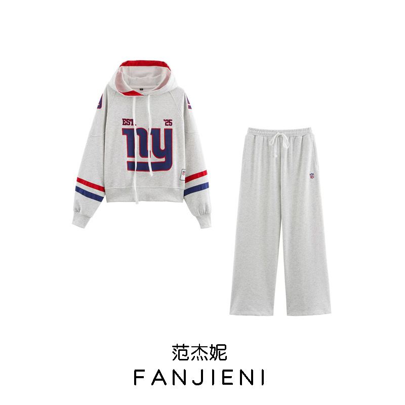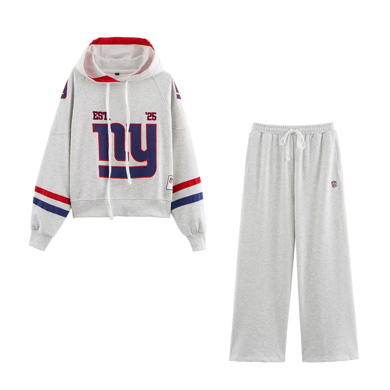 跨境外贸批发秋季新款ZA女装欧美风纽约巨人队饰卫衣+长裤0264312
