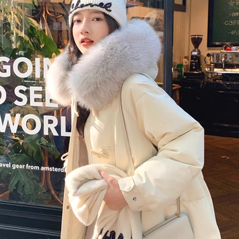 ダウンジャケットヨーロッパバッグレディースミドル丈2023レディースロングスタイル新しいins冬厚みのあるファー襟スリムカジュアル多用途