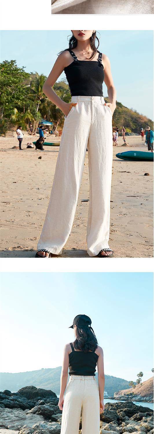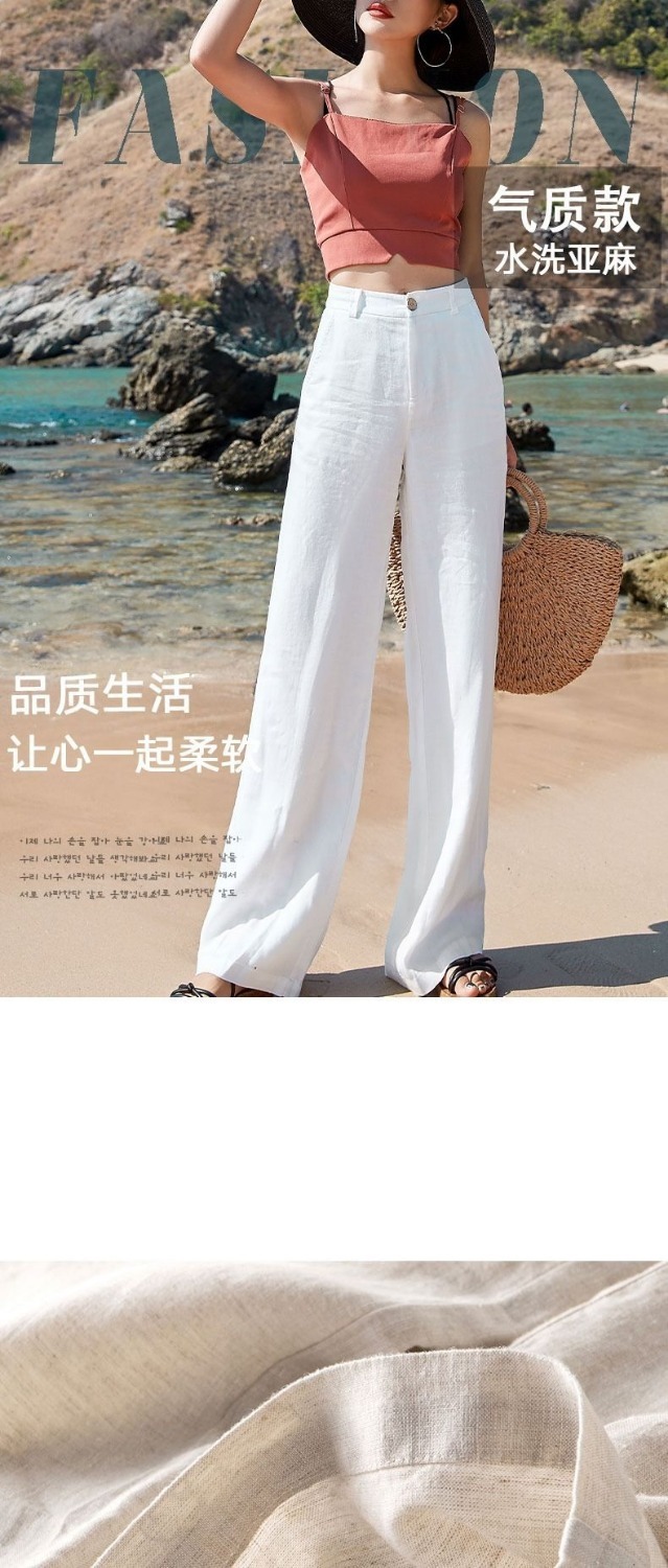綿麻の広脚のズボンの夏の薄いタイプのカジュアルなズボンの女性の韓国版のゆったりしている亜麻の婦人服は腰のまっすぐな長ズボンを緩めます。