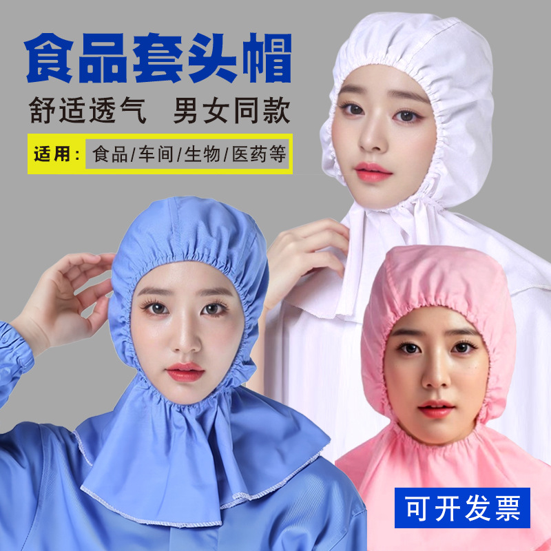 食品厂工作帽车间工作防尘头套弹力披肩带耳挂包头帽子套头帽批发
