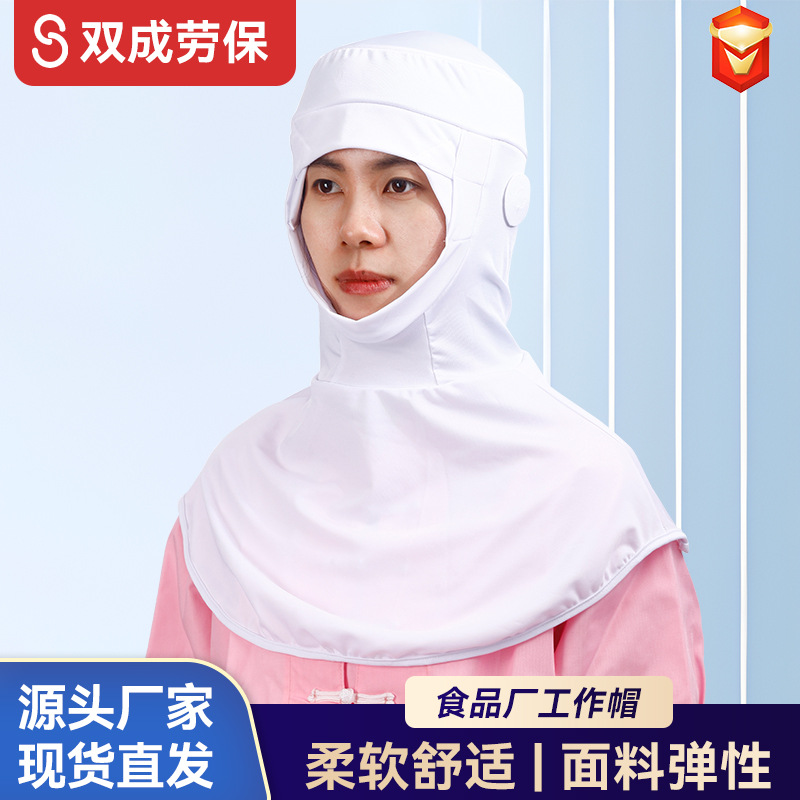 食品厂专用工作帽螺纹贴脸披肩式发帽白色披肩帽加工车间防护头套