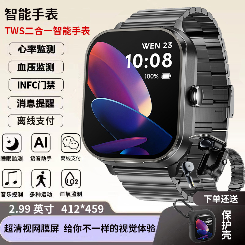 スマートbluetooth腕時計イヤホン2 in 1多様な運動モードNFC入退室運動手環血酸素モニタリング