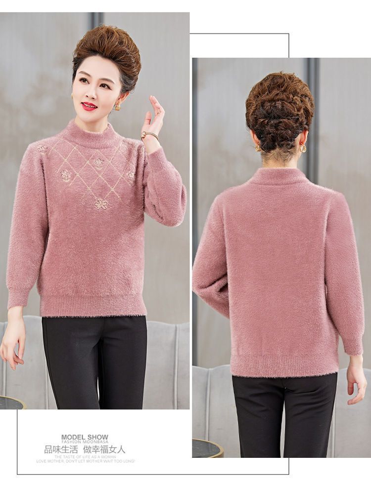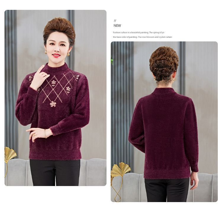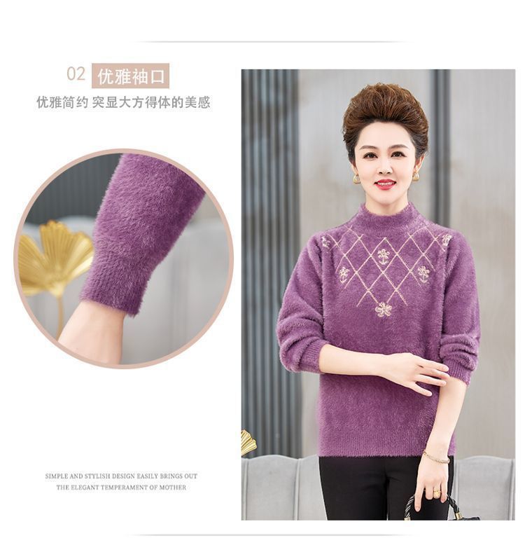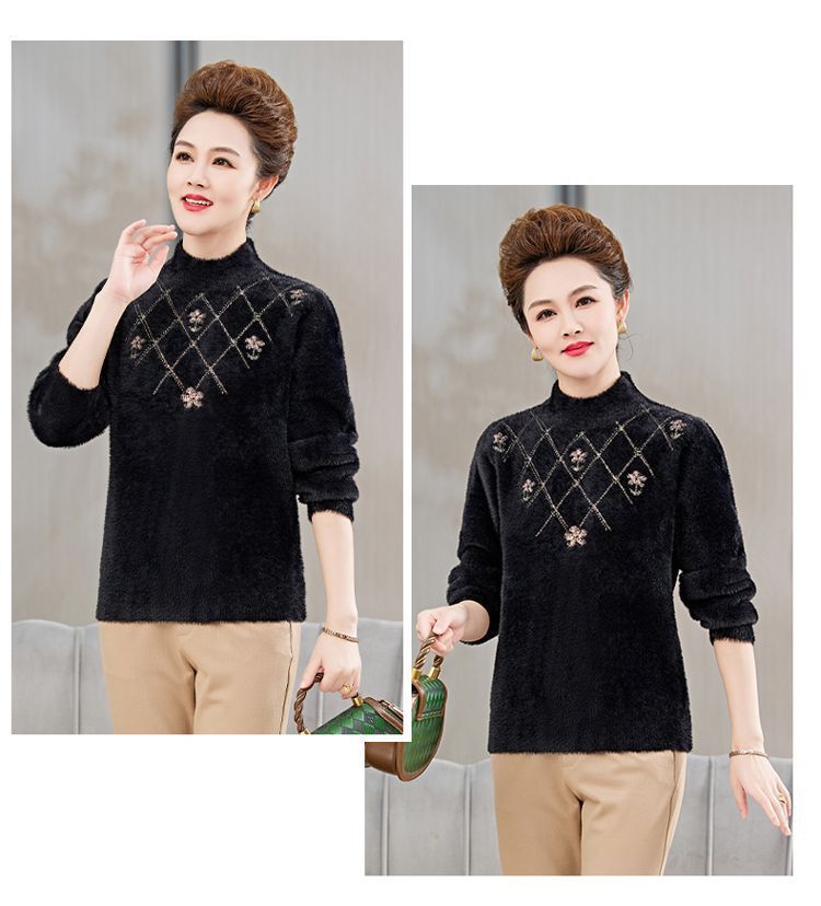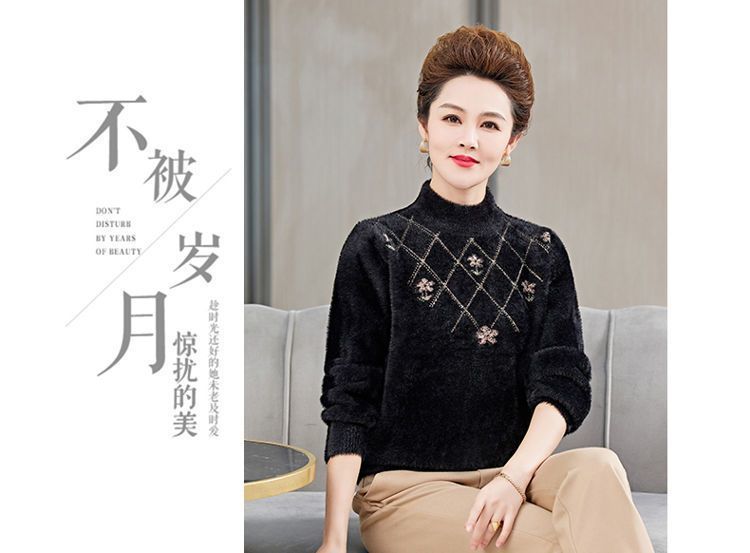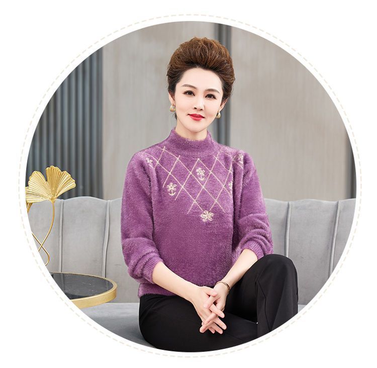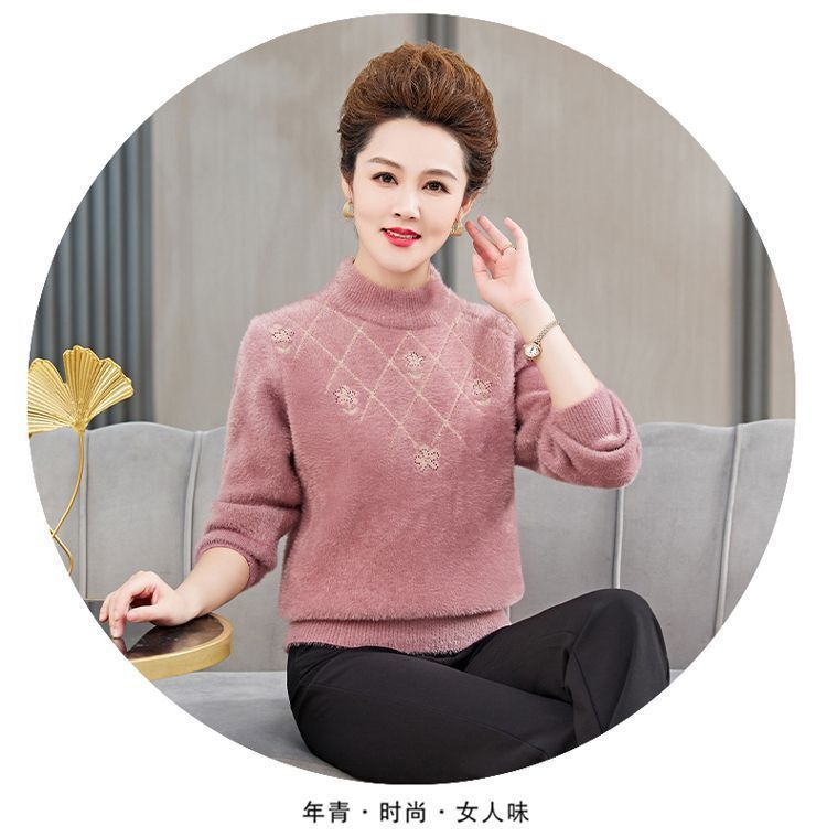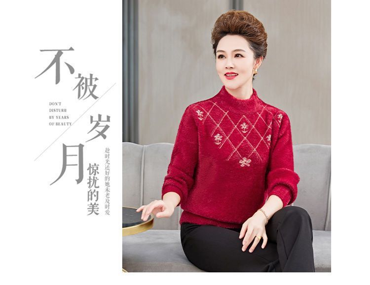 秋冬ママ服ミンクベルベットセーターレディースベルベット厚みのある外国風暖かい大きいサイズ中高年ニットボトムストップ