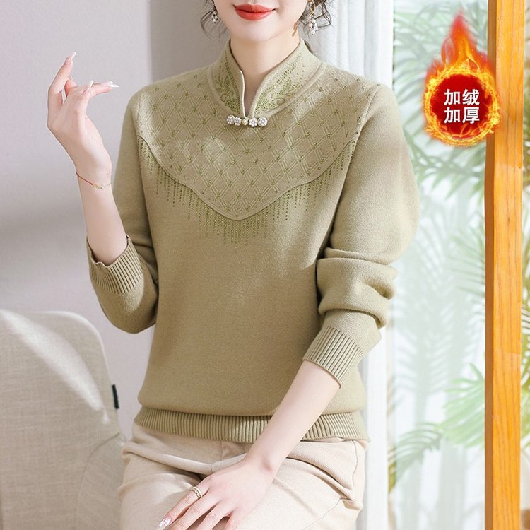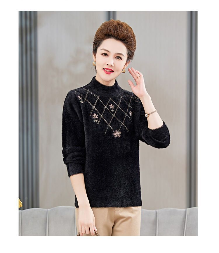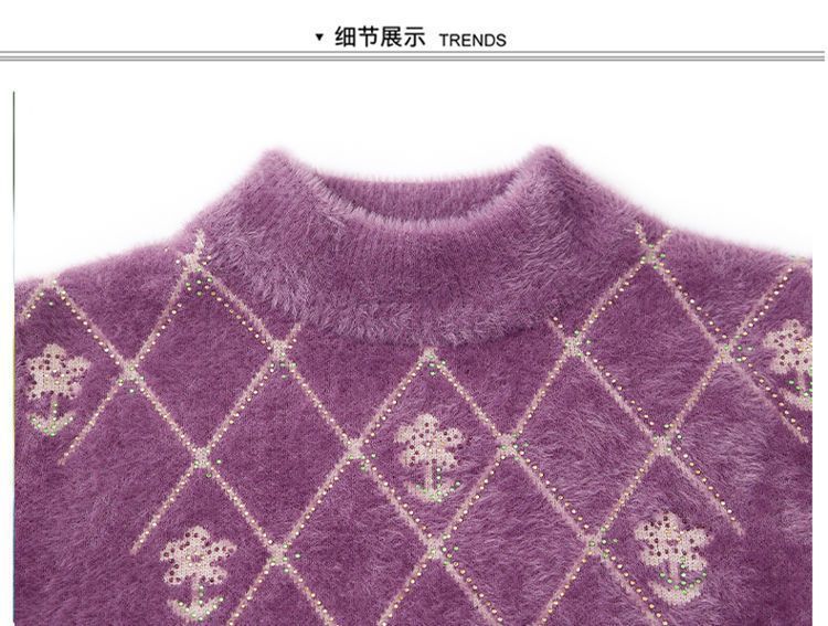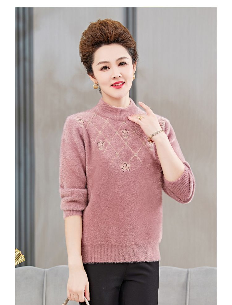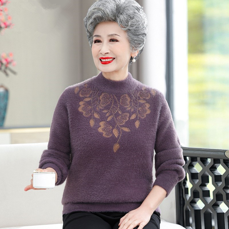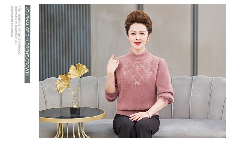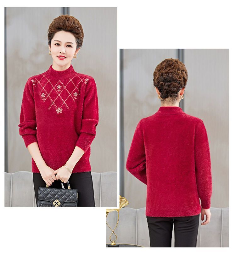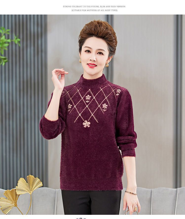 秋冬ママ服ミンクベルベットセーターレディースベルベット厚みのある外国風暖かい大きいサイズ中高年ニットボトムストップ