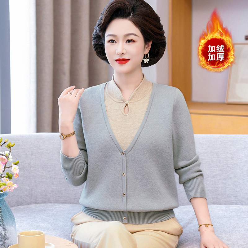 お母さんの冬の服の国風のセーターとベルベットの厚い上着の中で高齢者の女性の秋冬の保温の中でニットの底のシャツを掛けます。