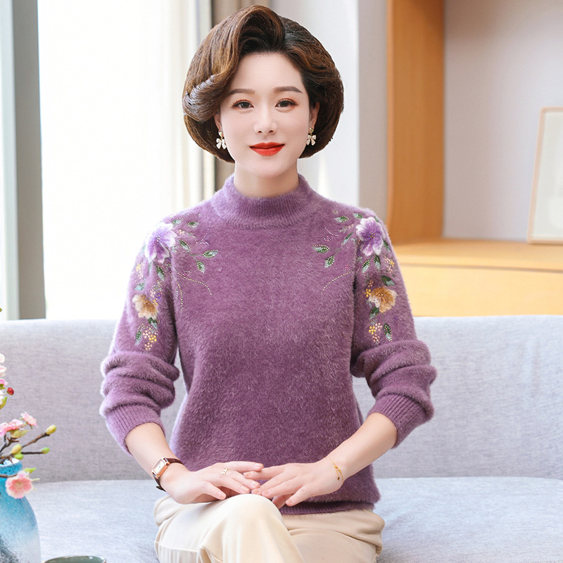 妈妈秋冬装高档水貂绒加厚毛衣中老年女装洋气保暖上衣宽松打底衫