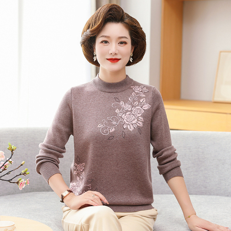 お母さんの秋冬用厚手セーター、2025年新作、中高年女性用セーター、高齢者向けニットトップス、おばあちゃん用
