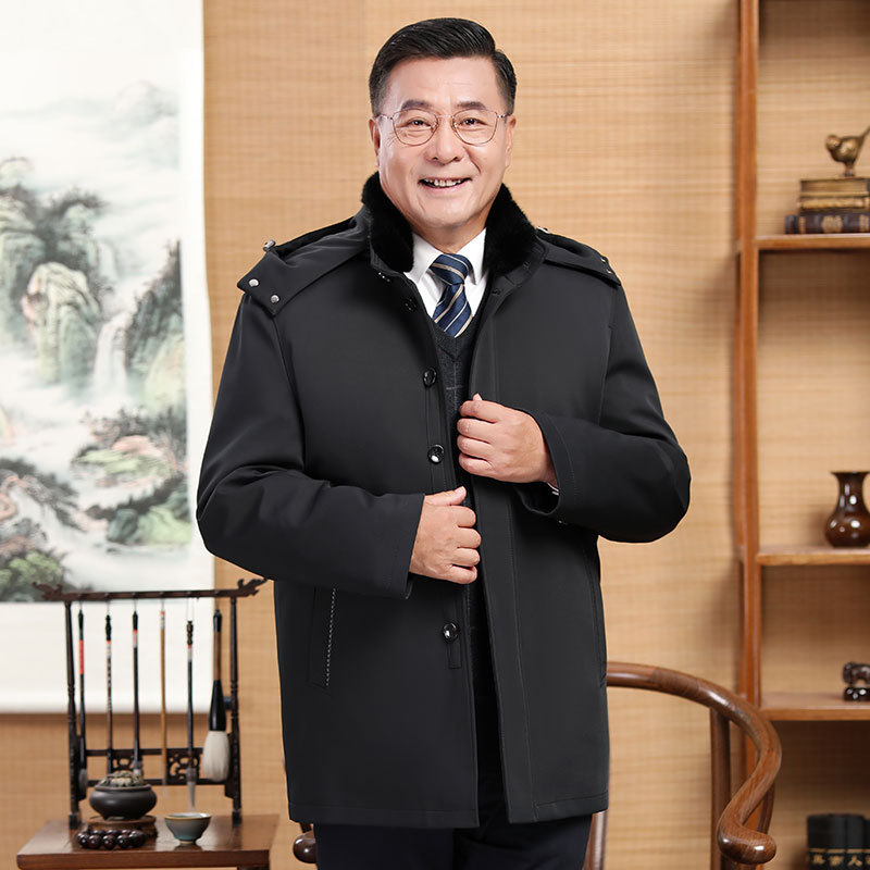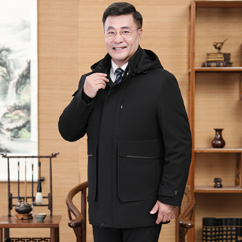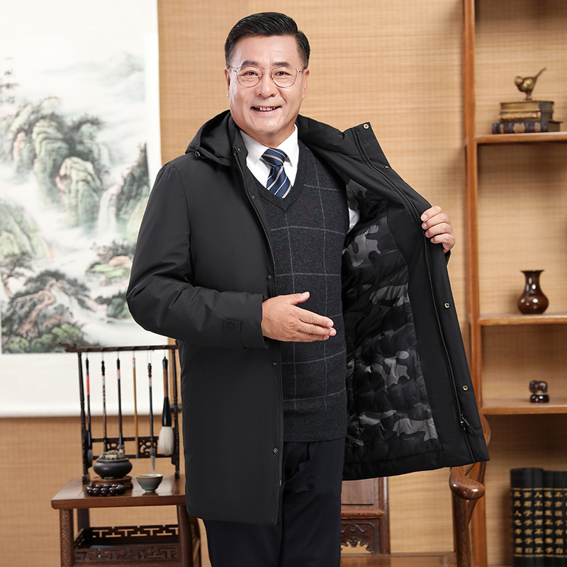 2025新型中高年ダウンジャケット男性のお父さんの中の長さは内胆を取り外して保温コートを厚くすることができる