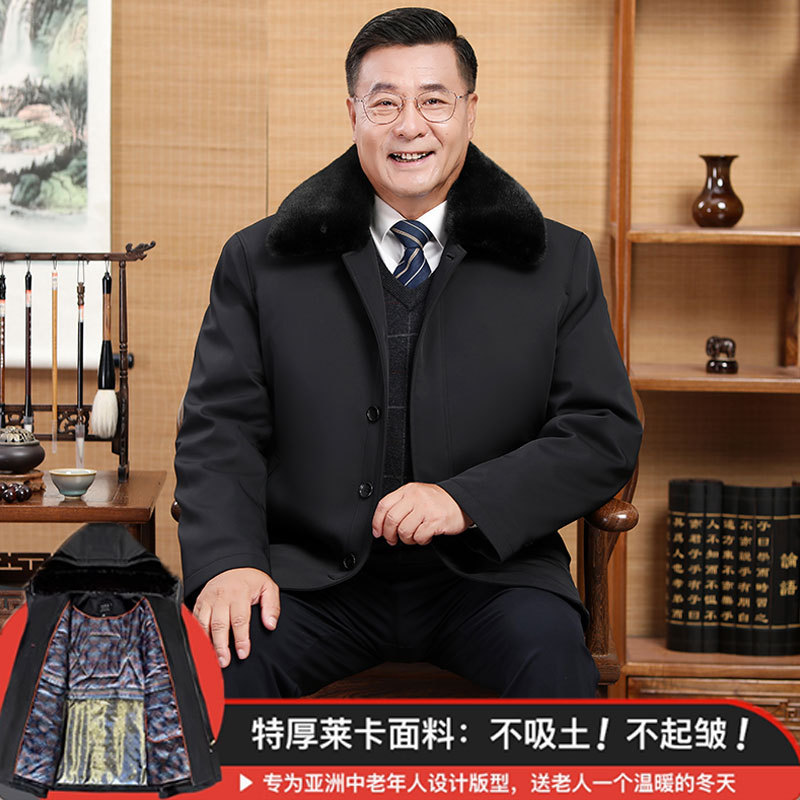 中年の人の暖かいダウンジャケットのお父さんの冬の服は内胆を取り外して太って大きいサイズの中高年のダウンジャケットの男性をプラスします。