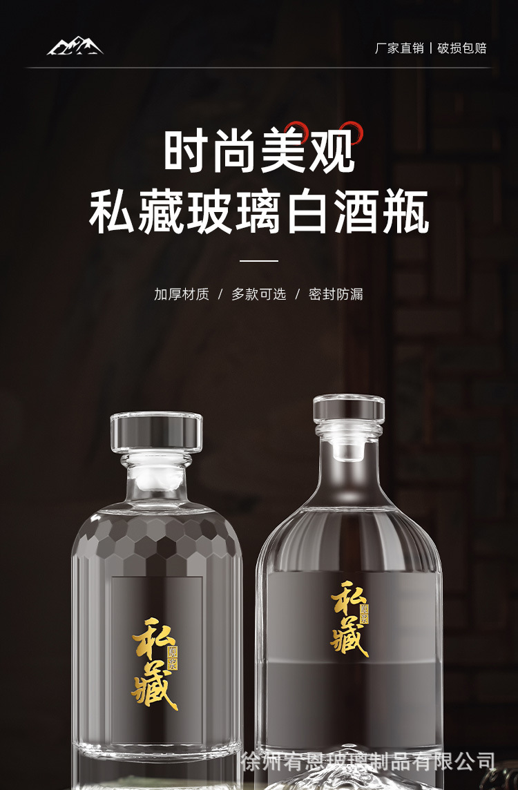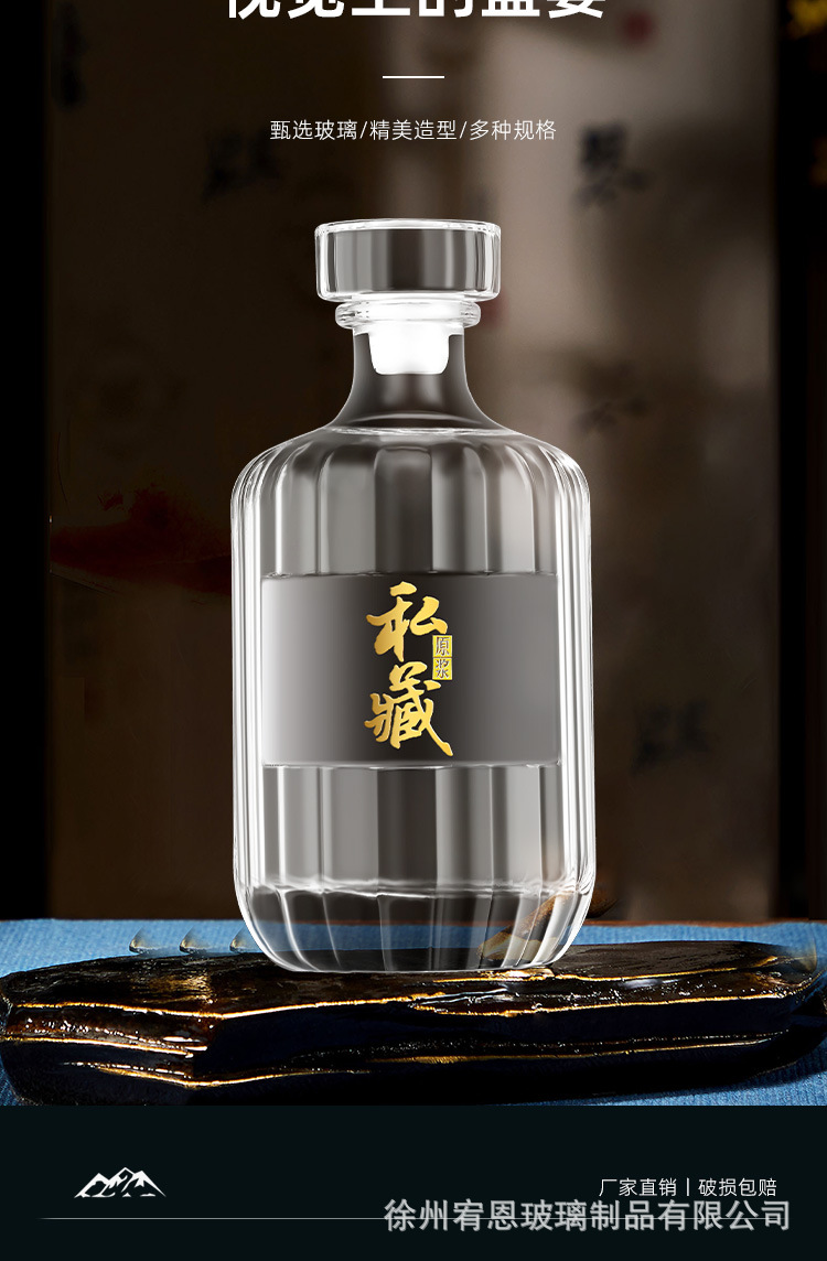私藏玻璃白酒瓶晶白料玻璃酒空瓶一斤装白酒存酒瓶500ml密封酒瓶